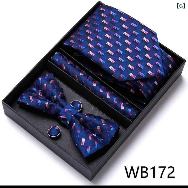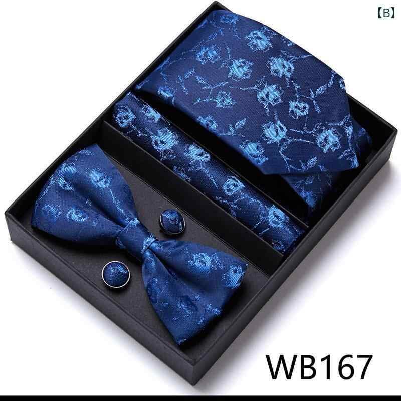 ネクタイ メンズ 花柄 ジャガード織り 再生繊維 ボウタイ 蝶ネクタイ ポケットチーフ チーフ 5点セット 新郎 介添人 結婚式 ウェディング フォーマル ビジネス