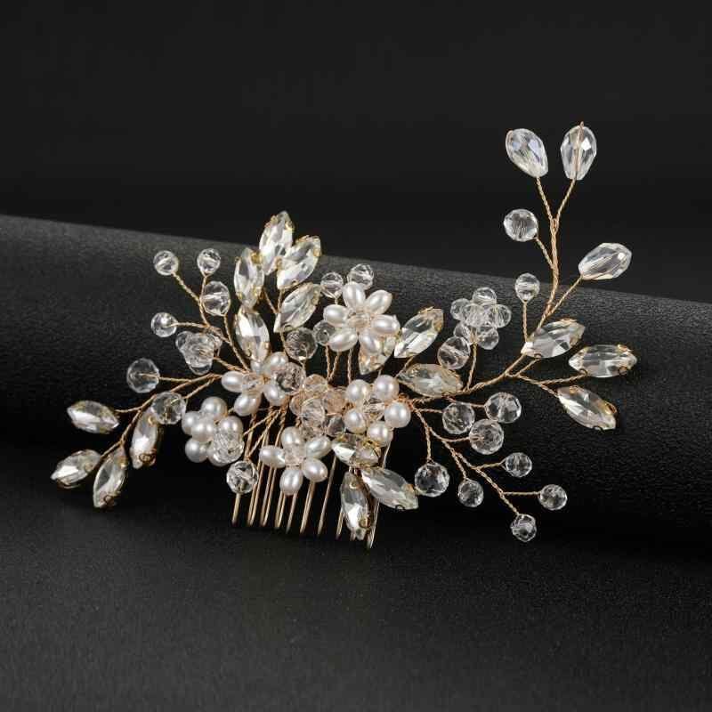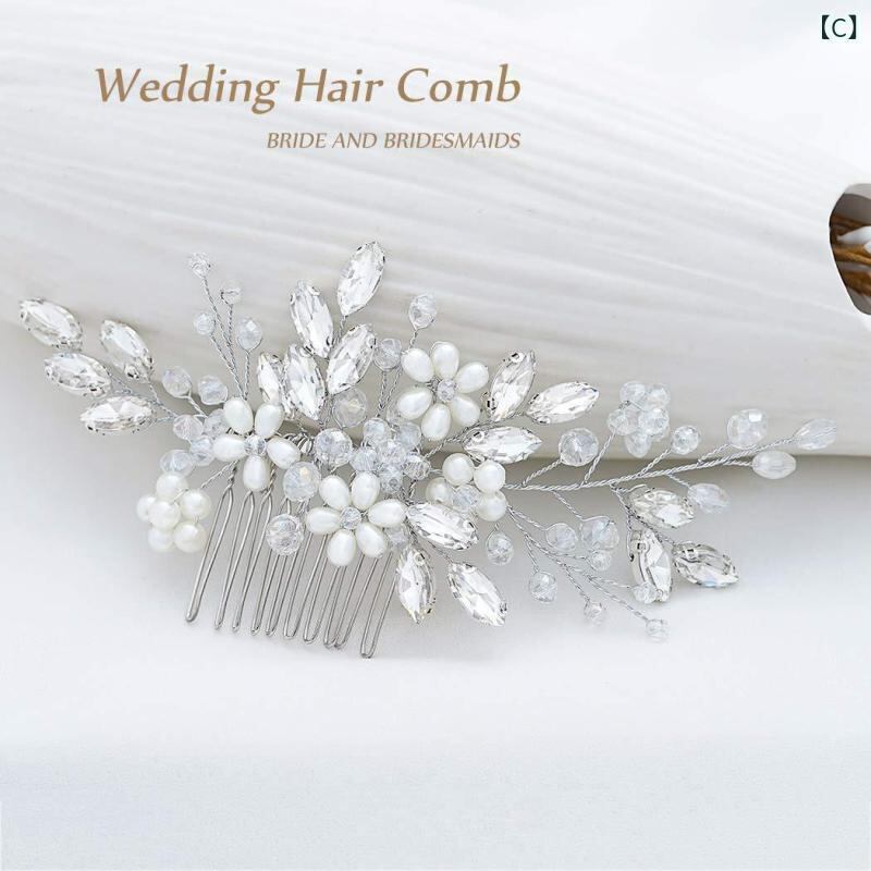 ヘアアクセサリー レディース 女性用 花嫁 挙式 新婦 ウェディング 結婚式 ブライダル 披露宴 欧米風 パール パール クリスタル 水晶 合金 ヘアコーム 髪飾り かんざし ゴールド シルバー