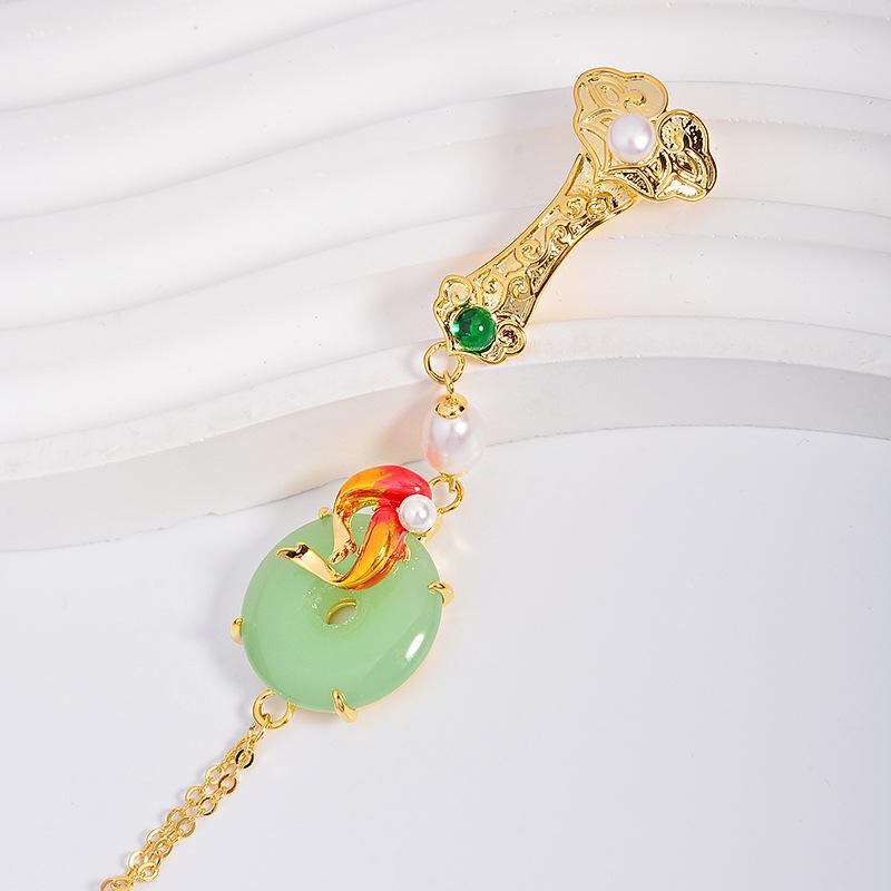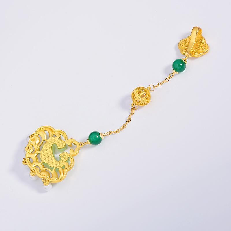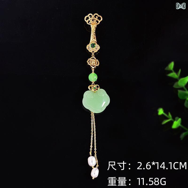 ブローチ レディース チャイナ風 漢服 和装 祥雲 玉環 平安ボタン タッセル 銅 ジルコニア ゴールド 高級感 精巧 個性的 エレガント チャイナドレス フォーマル