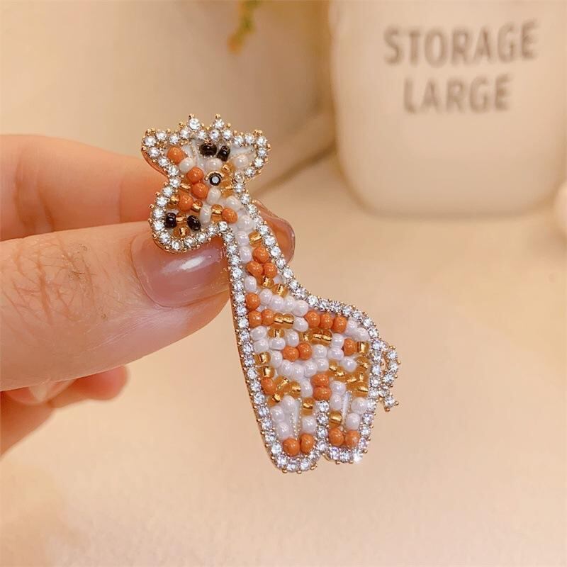 ブローチ 男女兼用 キリン アニマル モチーフ ラインストーン 銅製 高級感 上品 おしゃれ エレガント 個性派 デイリー 普段使い ピン アクセサリー
