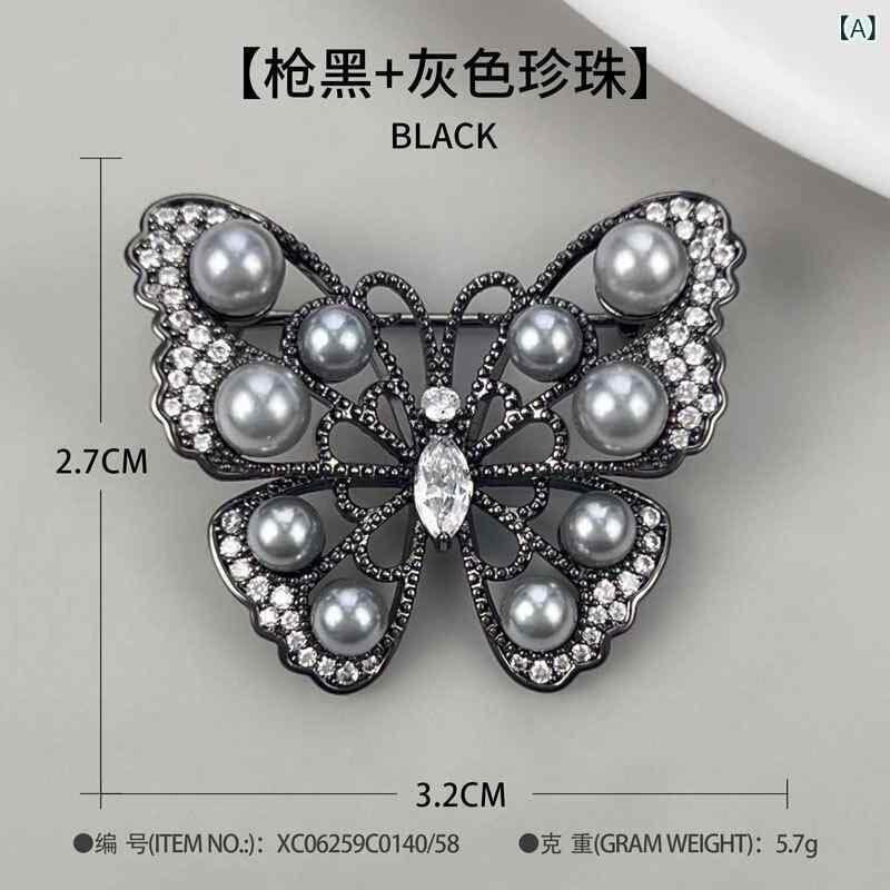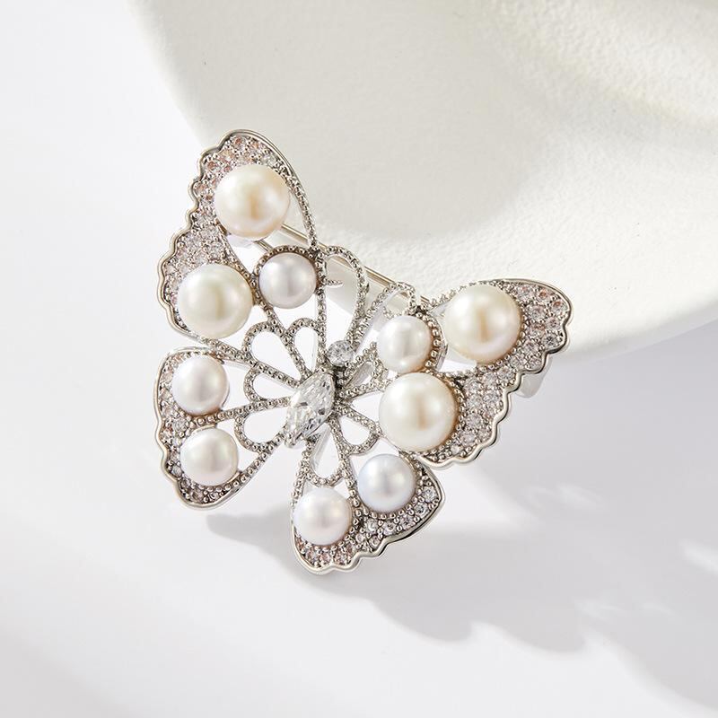 胸針: my沐禹 軽奢 淡水パール 透かし彫り 蝶 ブローチ