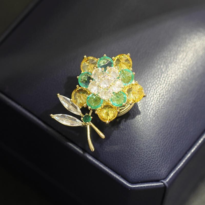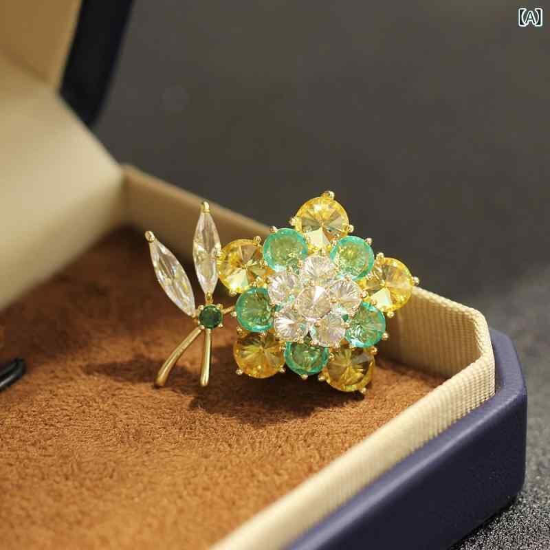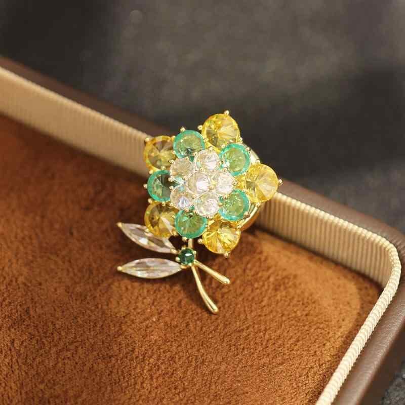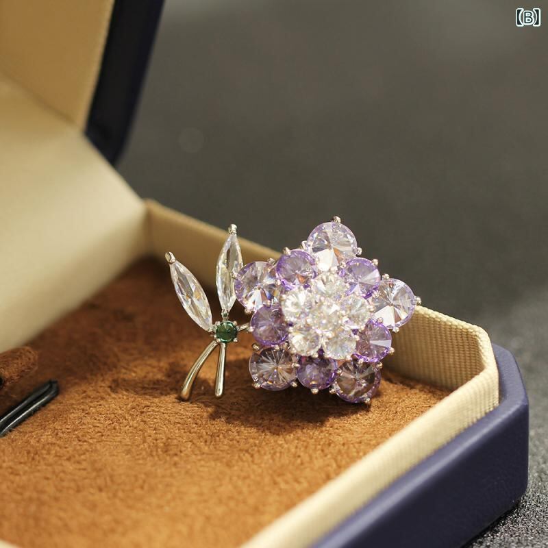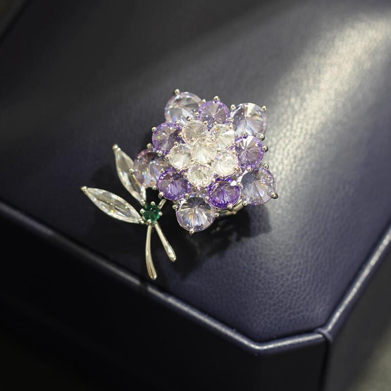 ブローチ レディース 高級感 バイカラー ジルコニア アジサイ 花モチーフ 強力マグネット 磁石 固定クリップ 跡がつかない 胸元カバー 覗き見防止 銅製 電気メッキ加工 春夏