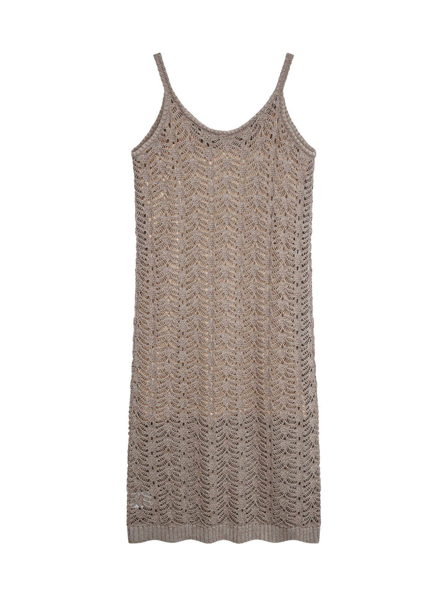 ワンピース Vネック スパンコール キャミワンピース ロング丈 シアー 透け感 通気性 コットン インナーキャミソール 上品 ホワイト ブラウン系 2点セット 春夏