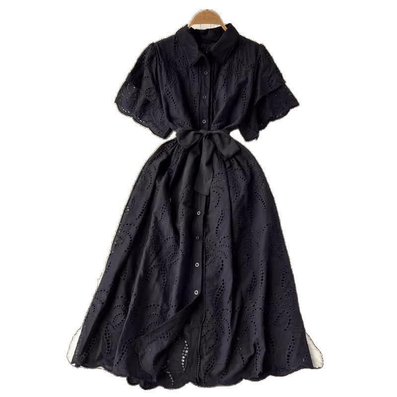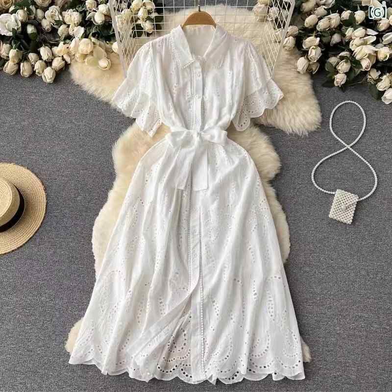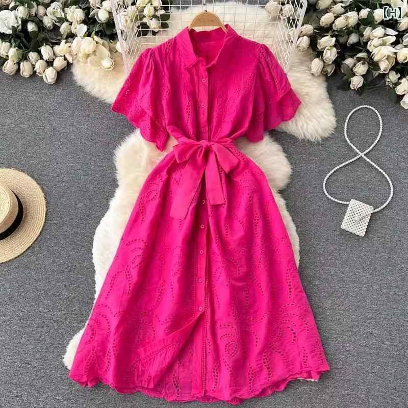カテゴリ: ワンピース スタイル: エレガント, 通勤 スカート丈: ミディアム丈 ネックライン: ポロネック 袖丈: 半袖 カラー: ブラック, イエロー, グリーン, ホワイト, ベージュ, パープル, マゼンタ, ピンク, ライトブルー サイズ: フリーサイズ 主な素材の含有量: 30%-50%