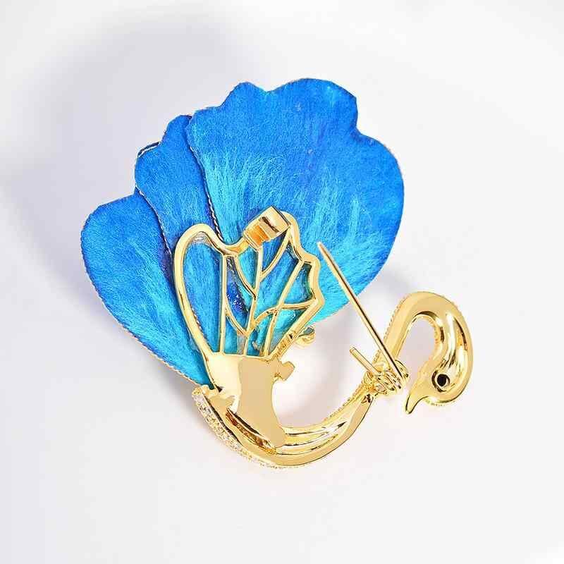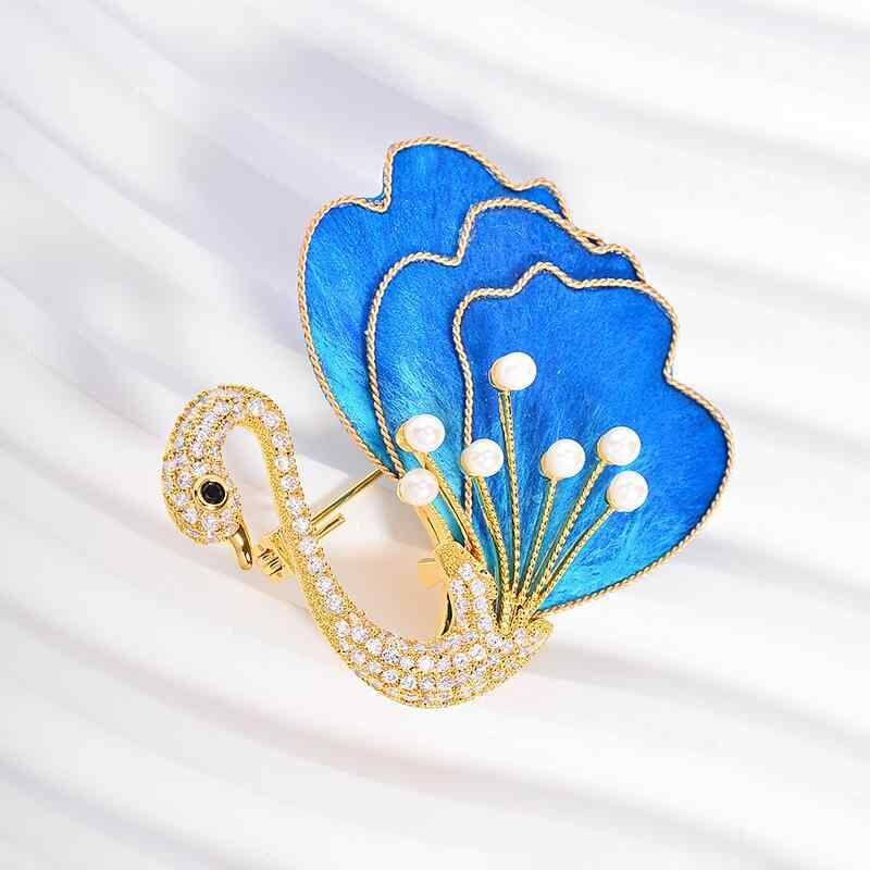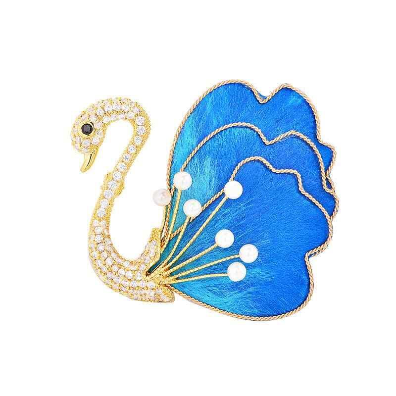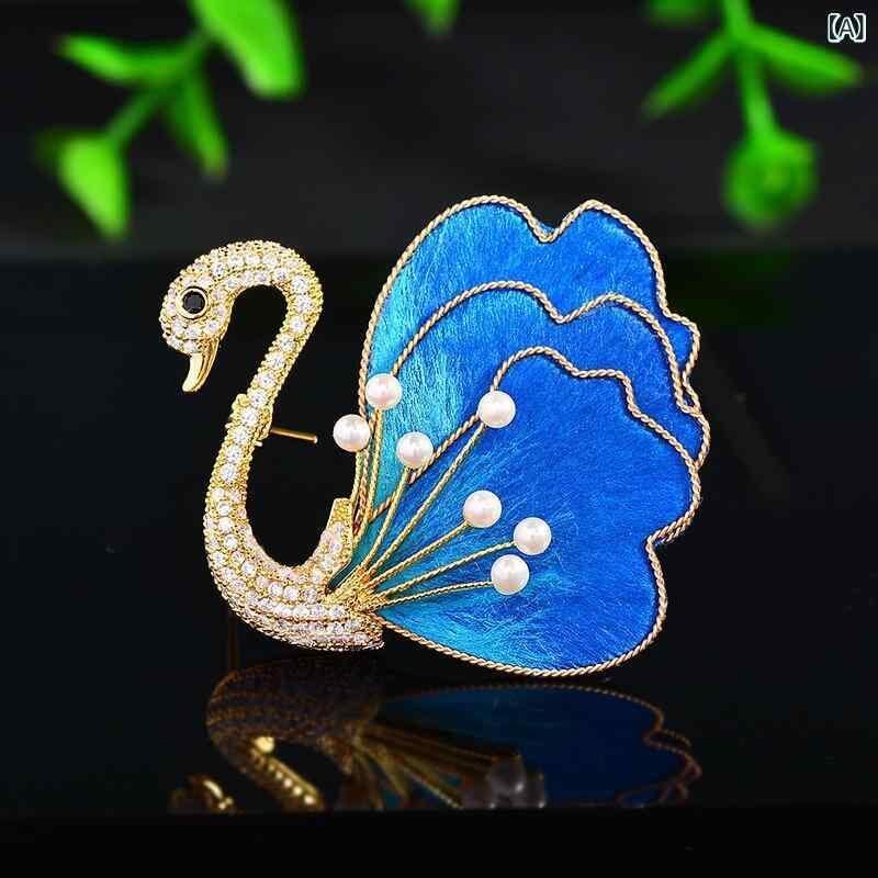 ブローチ レディース 白鳥 花 ジルコニア 高級感 おしゃれ エレガント 上品 ユニーク デザイン チャイナドレス スーツ フォーマル カジュアル 銅製 ブルー 春夏