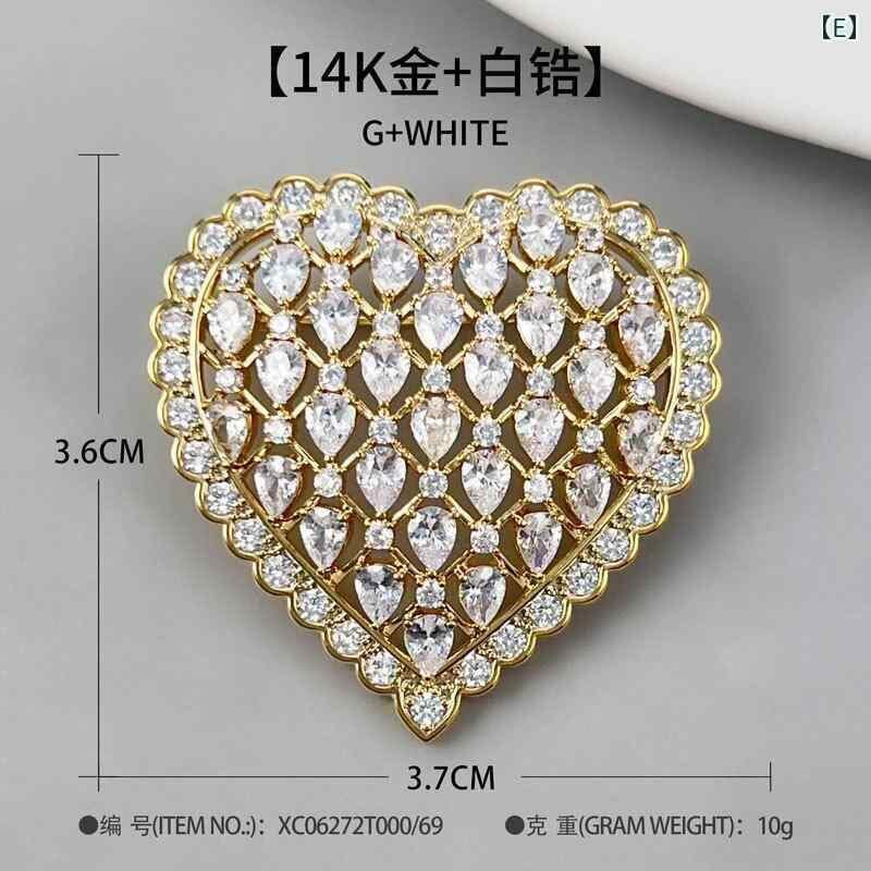ブローチ レディース 銅製 マイクロセッティング フルジルコニア ナイトシールド ハート 四つ葉のクローバー 軽やか 高級感 ファッション 通勤 オフィス 普段使い 夏
