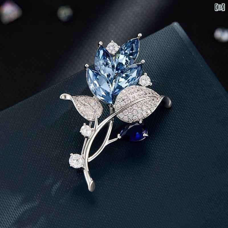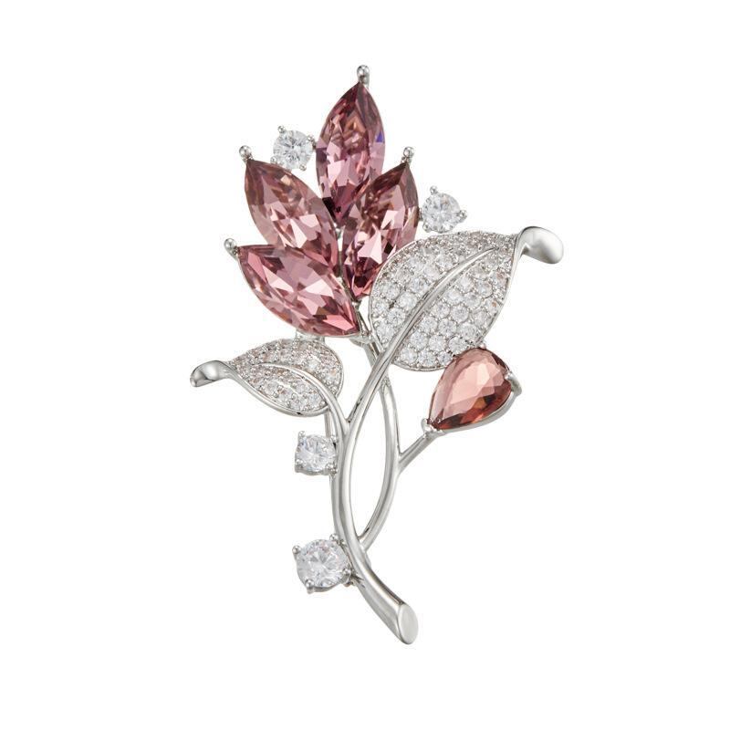 ブローチ レディース 透明感 クリスタル 花 ジルコニア マイクロパヴェ 立体 植物 リーフ 高級感 エレガント おしゃれ ファッション コサージュ 女性用 結婚式 発表会 パーティー 普段使い フォーマル アクセサリー