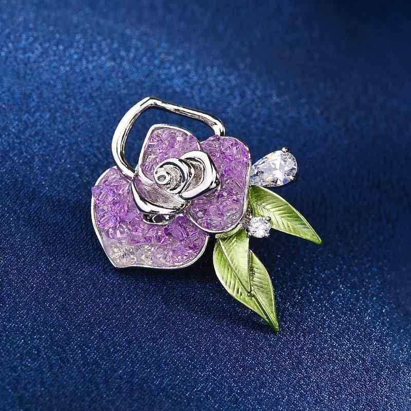 ブローチ レディース 薔薇 ローズ 花 フラワーモチーフ マグネット式 針なし 高級感 クリスタル風 ジルコニア 銅製 電気メッキ加工 パープル 紫 春夏 合わせやすい おしゃれ