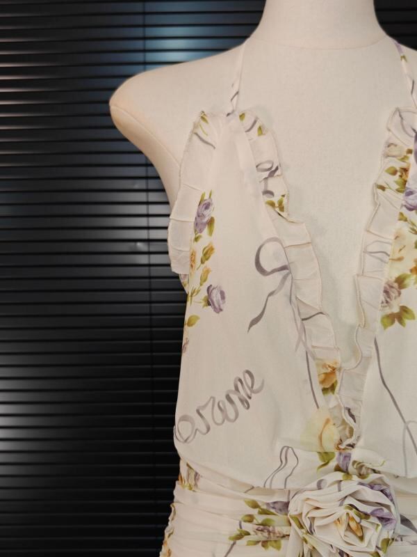 ワンピース レディース 夏 ホルターネック マキシ丈 プリント ノースリーブ Aライン ビーチ リゾート バカンス 上品 エレガント セレブ風 華やか コットン ポリエステル 白 ヒョウ柄 ウエスト調節