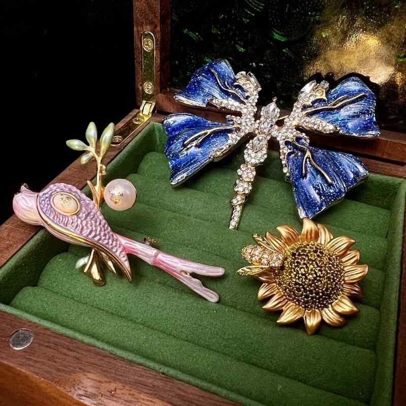 ブローチ レディース フレンチスタイル エレガント 蜻蛉 アニマル ゴールド彩色 上質 高級感 ヴィンテージ レトロ調 ファッション小物 服飾アクセサリー 銅製 秋冬