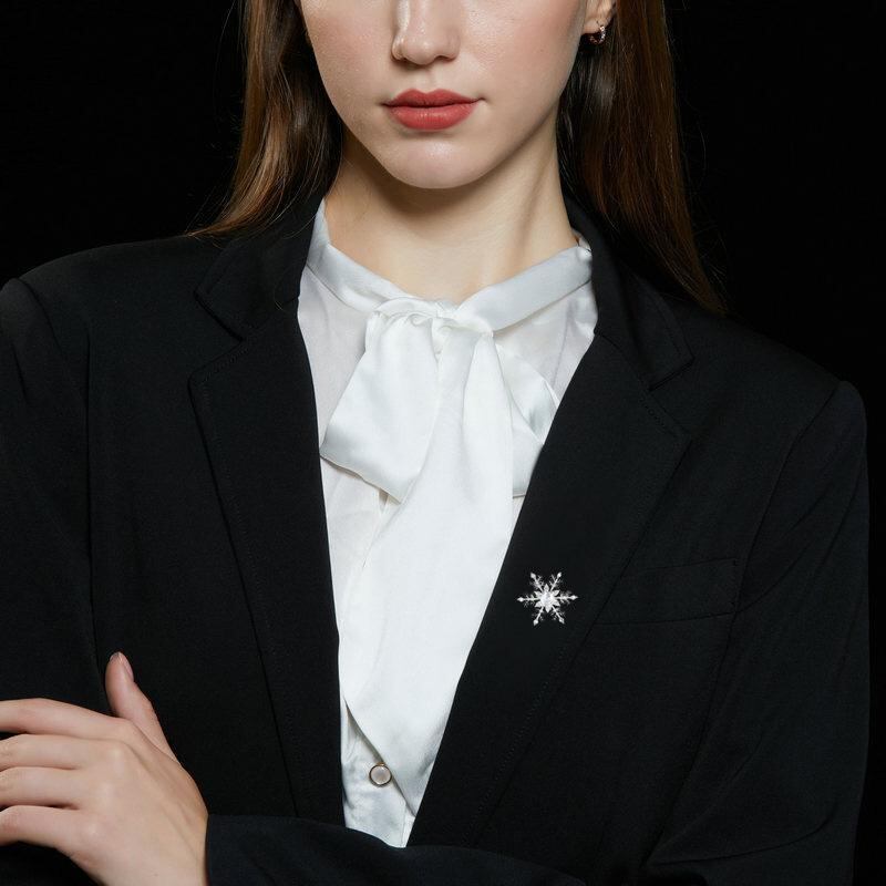 ブローチ レディース 回転式 ジルコニア 雪の結晶モチーフ おしゃれ エレガント 高級感 スーツ ジャケット用 コサージュ ゴールド シルバー