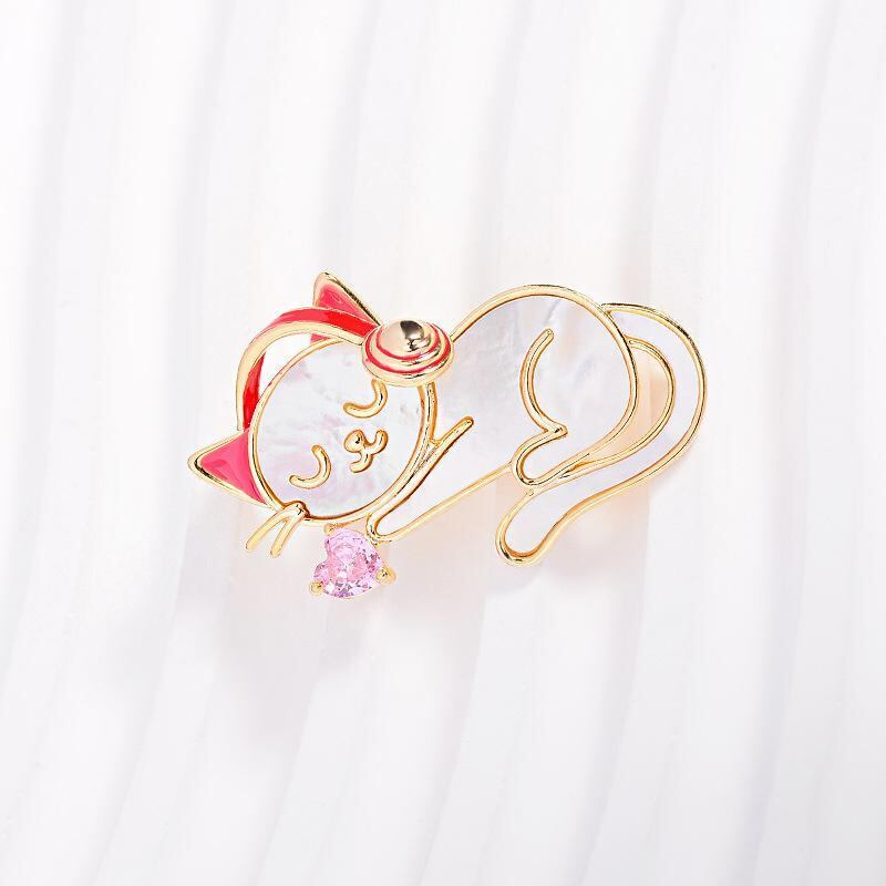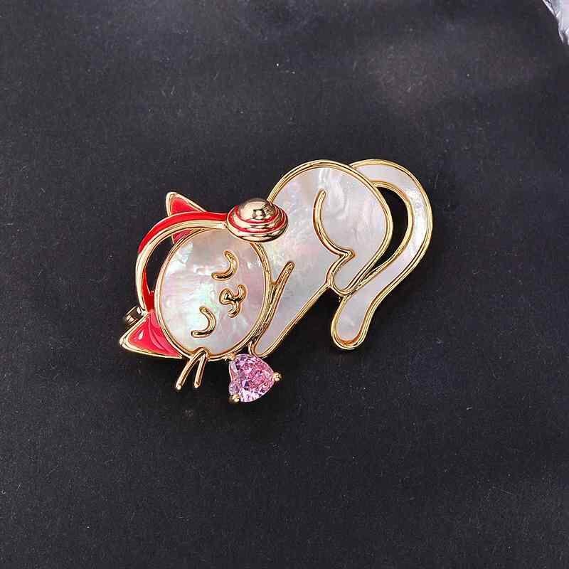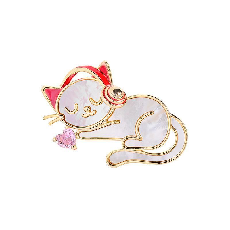 ブローチ レディース 猫 ヘッドホン 天然シェル 個性的デザイン スタイリッシュ エレガント 上品 精巧 高級感 銅 ジルコニア ゴールド アクセサリー 普段使い お出かけ パーティー フォーマル