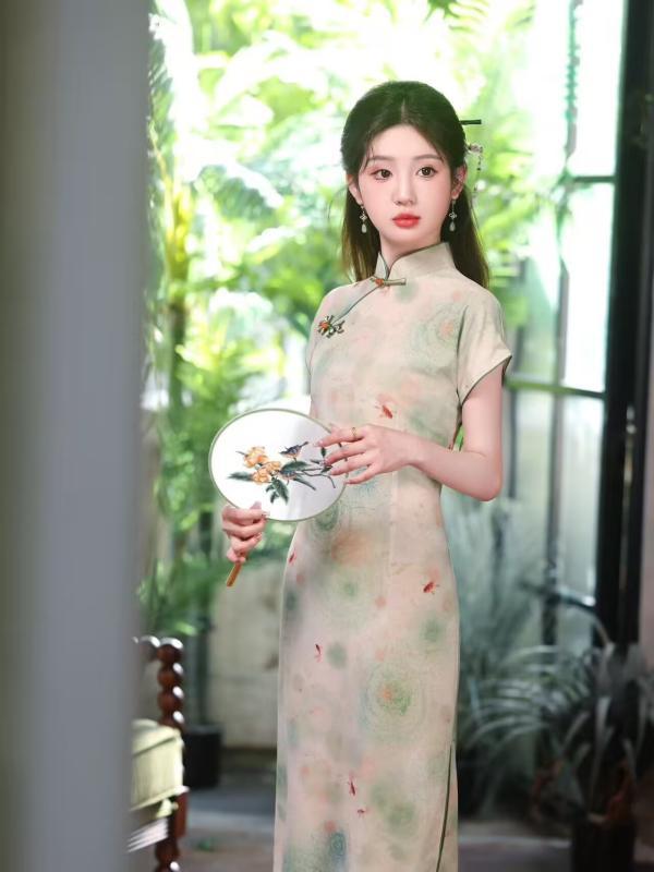 チャイナドレス レディース 半袖 フェミニン 二次会 パーティー 中国風 夏 袖付き エレガント ワンピース 若見え女性 普段着