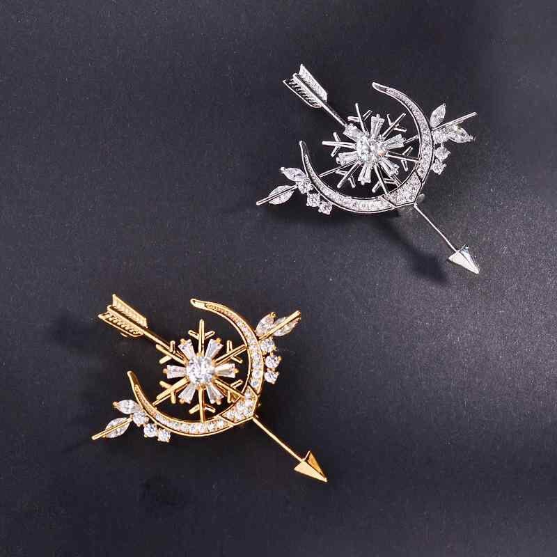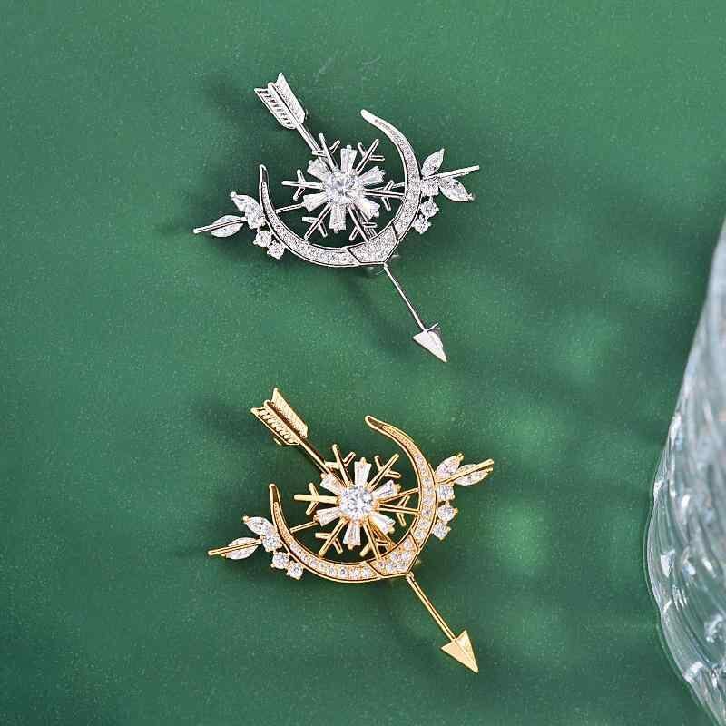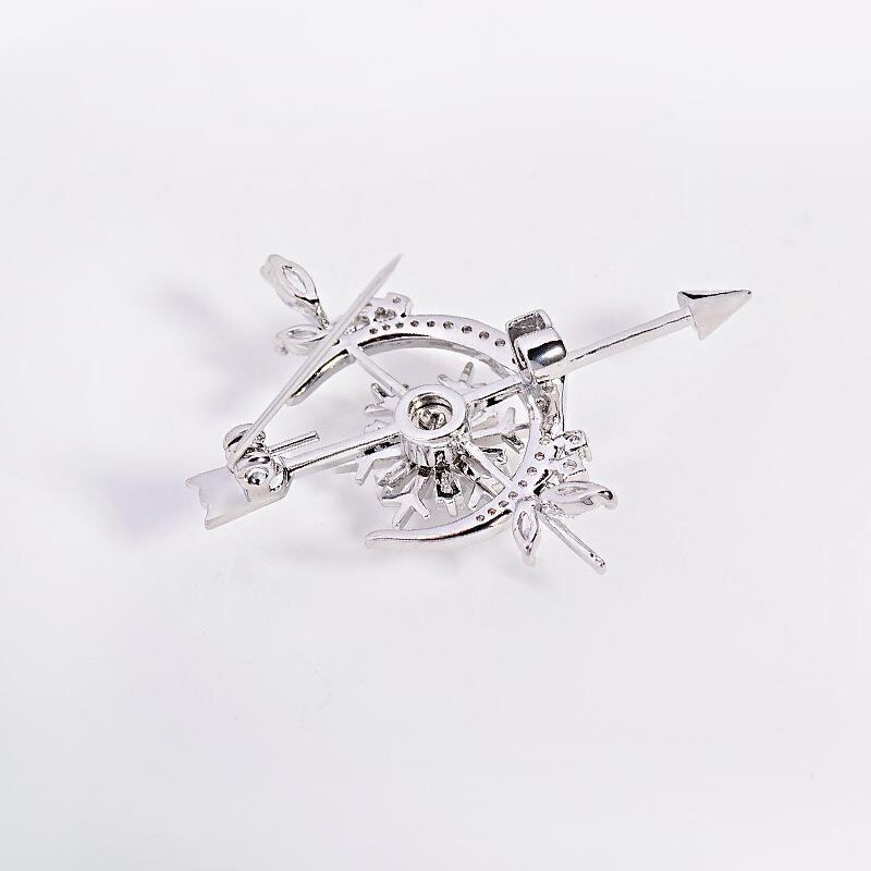 ブローチ レディース 弓矢モチーフ 個性的デザイン マイクロパヴェジルコニア 高級感 精巧 回転式 銅製 電気メッキ加工 ゴールド シルバー ファッション小物 オフィス カジュアル フォーマルアクセサリー