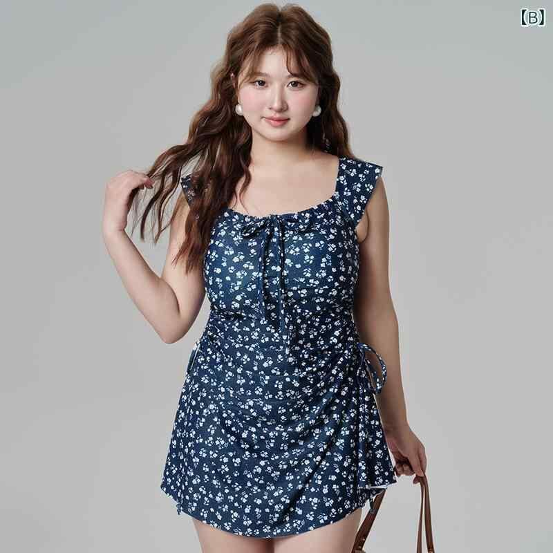 水着 レディース ワンピース 大きいサイズ ぽっちゃり 体型カバー お腹カバー 着痩せ 細見え ハイウエスト 花柄 チェック柄 スカート一体型 スイムウェア 速乾 高伸縮性 パッド付き ノンワイヤー 温泉 リゾート ビーチ プール 海水浴