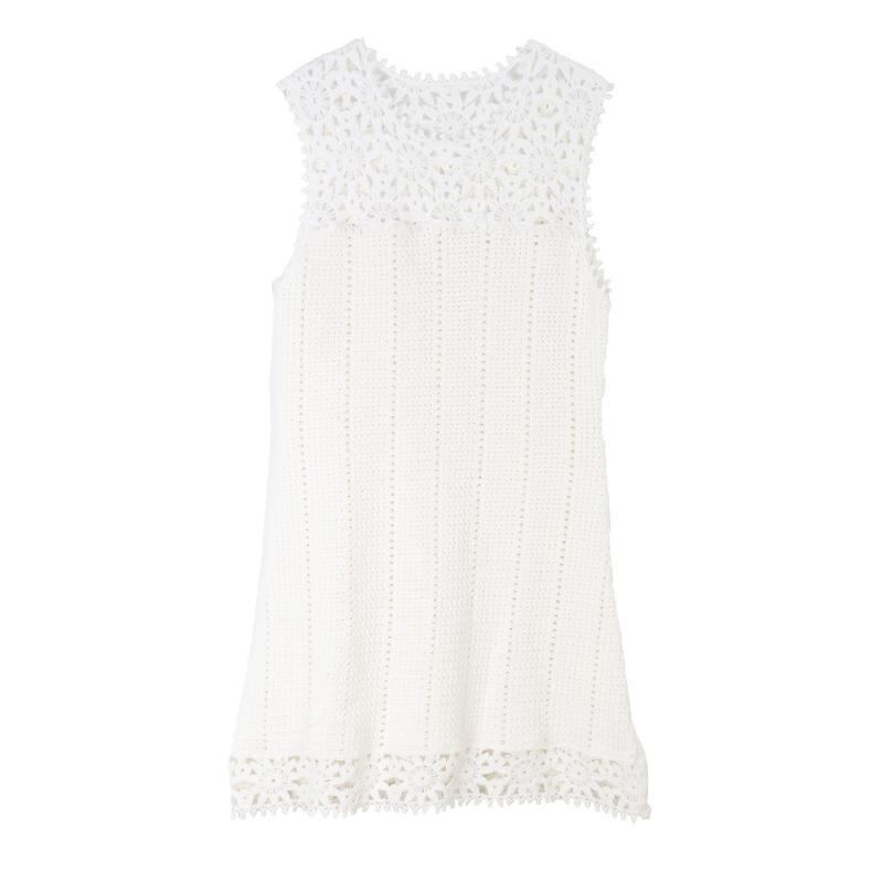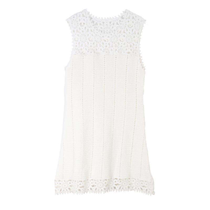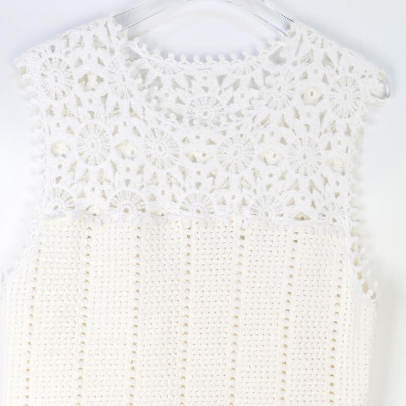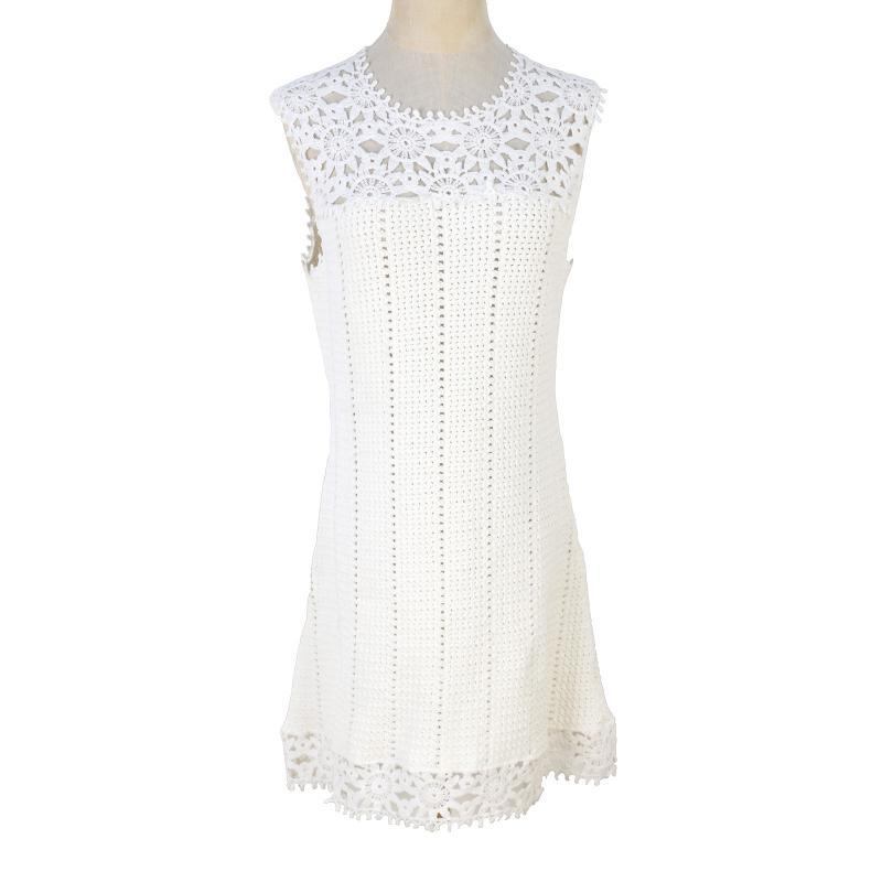 ワンピース レディース 春夏 フレンチスタイル リゾートドレス 透かし編み ノースリーブ Aライン ラウンドネック 上品 ホワイト ビスコース繊維 ビーチ バケーション タウンユース