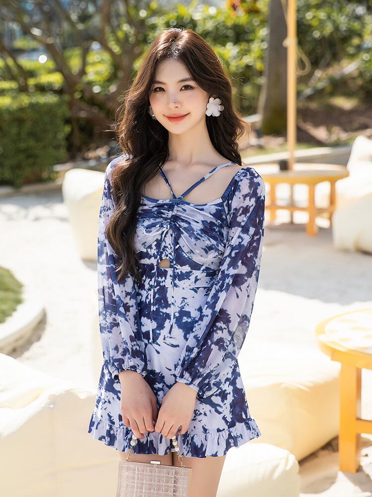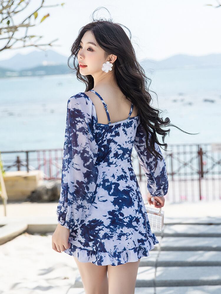 商品仕様: ・スタイル: 連体型 ・適用対象: 女性 ・対象年齢: 成人 ・誤差範囲: 1cm ・柄: 図案 ・主な素材: 錦綸82% ・裏地: ライクラ18% ・シーン: 水泳・水遊び ・カラー: ブルー ・サイズ: M、L、XL、2XL、3XL、4XL ・袖丈: 長袖 ・パッド: 胸パッド付き、ワイヤーなし