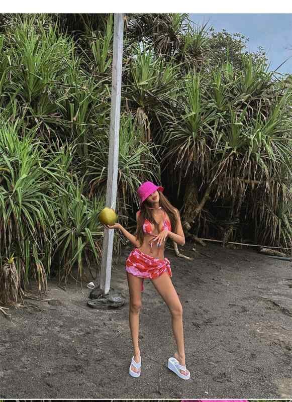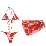 水着 レディース セパレート ビキニ 3点セット 韓国風 インスタ風 大人かわいい 小胸 体型カバー 花柄 ワイヤー入り 伸縮性 温泉 プール ビーチ リゾート 春夏 レッド