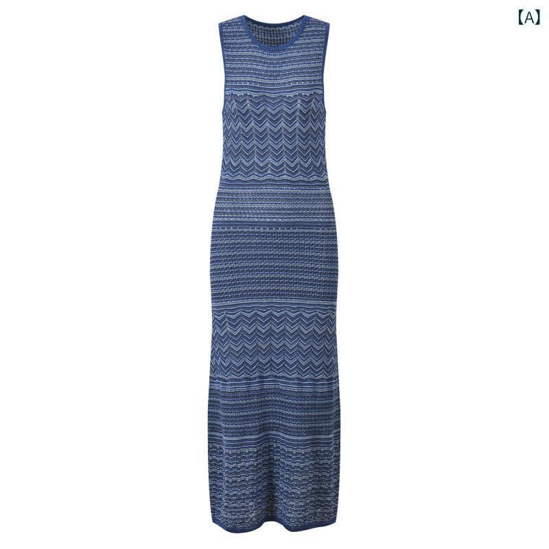 ワンピース ニットドレス 春夏 上品 エレガント ウェーブ柄 スリム 細見え 体型カバー ラウンドネック ロング丈 マキシ丈 通勤 オフィス きれいめ レーヨン ナイロン素材