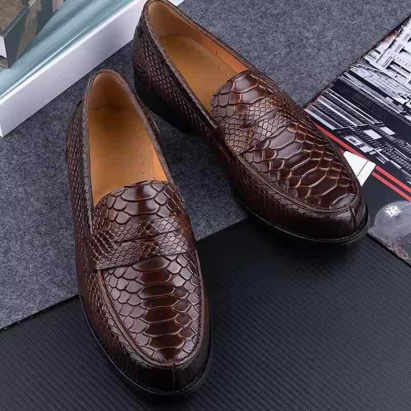 紳士靴 ローファー メンズ スリッポン ヘビ柄 パイソン柄 本革 牛革 レザー デイリーカジュアル 普段使い ドライビングシューズ タッセル フラットヒール 通気性 快適 高級感 裏地 マイクロファイバー ラバーソール ブラック ダークブラウン
