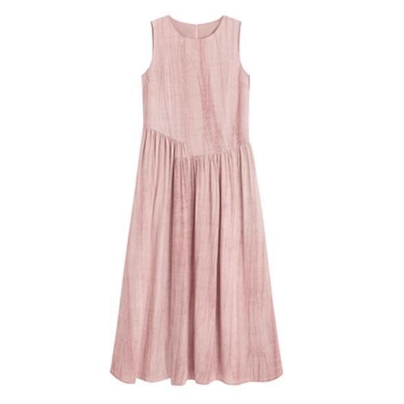 ワンピース レディース 春夏 手染め タイダイ リヨセル混紡 ピンク ノースリーブ ラウンドネック Aライン ゆったり ミモレ丈 上品 大人カジュアル
