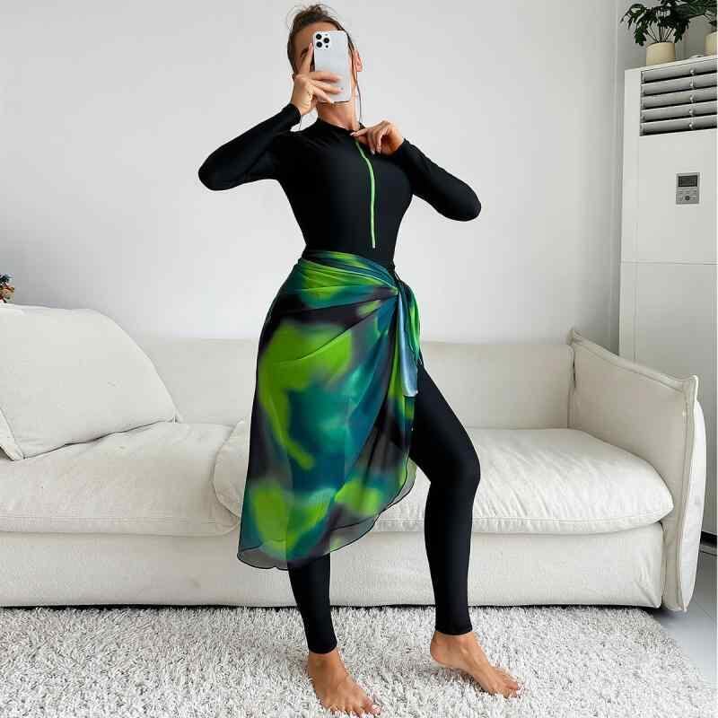 水着 レディース ムスリム向け 体型カバー 長袖 ロングパンツ UVカット 日焼け防止 速乾 無地 3点セット ポリエステル素材 リゾート ビーチ プール 春夏