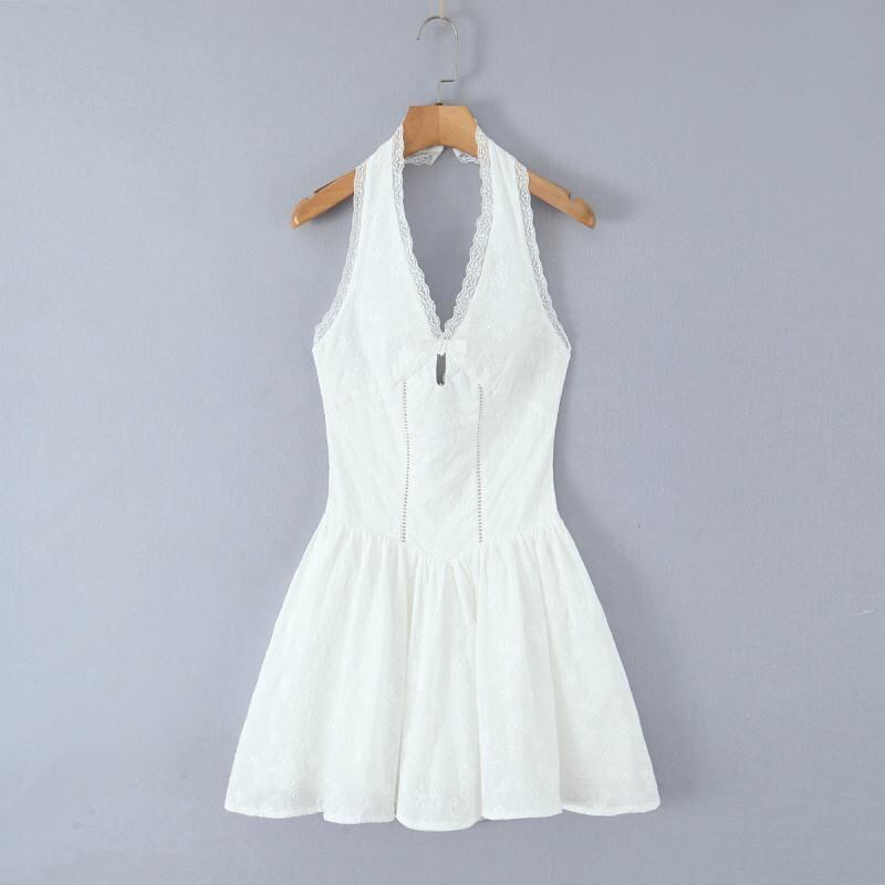 商品仕様: ・素材: 綿 ・柄: 無地 ・スタイル: 挂脖款 ・組み合わせ: ワンピース ・スカート丈: ミニ ・スカート型: Aライン ・ネックライン: 挂脖 ・袖丈: ノースリーブ ・袖型: プリンセススリーブ ・ウエスト: ハイウエスト ・要素: 背中開き ・カラー: ホワイト ・サイズ: S、M、L ・テイスト: セクシー ・スカート種類: ワンピース ・素材割合: 70%~80% ・開き: プルオーバー