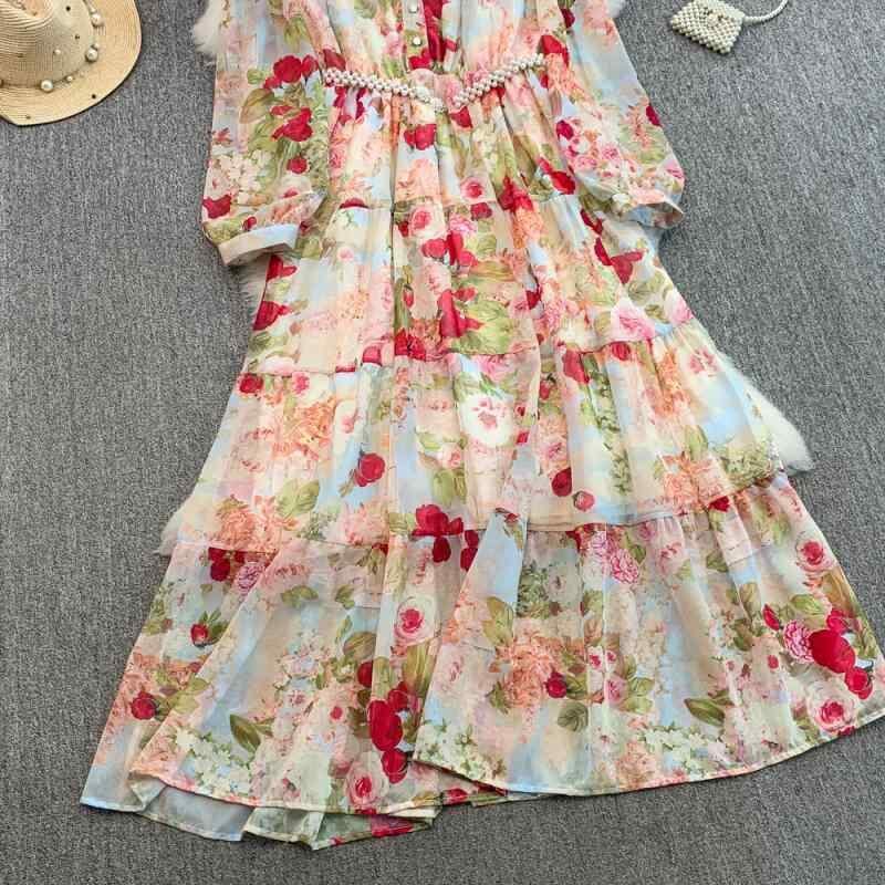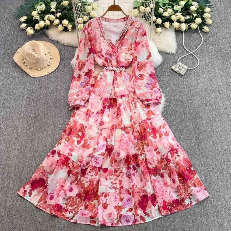 商品仕様: ・素材: シフォン ・柄: プリント ・スタイル: Aラインスカート ・構成: ワンピース ・スカート丈: ミモレ丈 ・スカートタイプ: フレアスカート ・ネックライン: Vネック ・袖丈: 長袖 ・ウエスト: ハイウエスト ・カラー: 淡ピンク、緑、ロイヤルブルー、ブルー、ピンク、紫 ・サイズ: フリーサイズ ・テイスト: エレガント、通勤 ・主な素材: ポリエステル30-50% ・種類: ワンピース