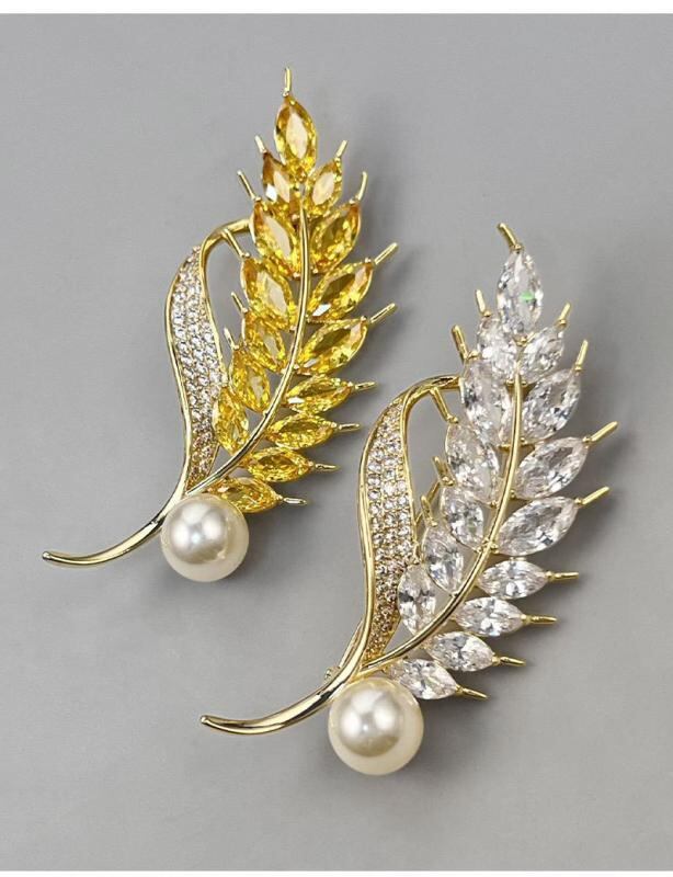 ブローチ レディース 麦の穂モチーフ ゴールドカラー 銅製 フルジルコニア マイクロパヴェ 輝く 立体 精緻 エレガント 上品 田園風 ファッション 通勤 普段使い 春夏
