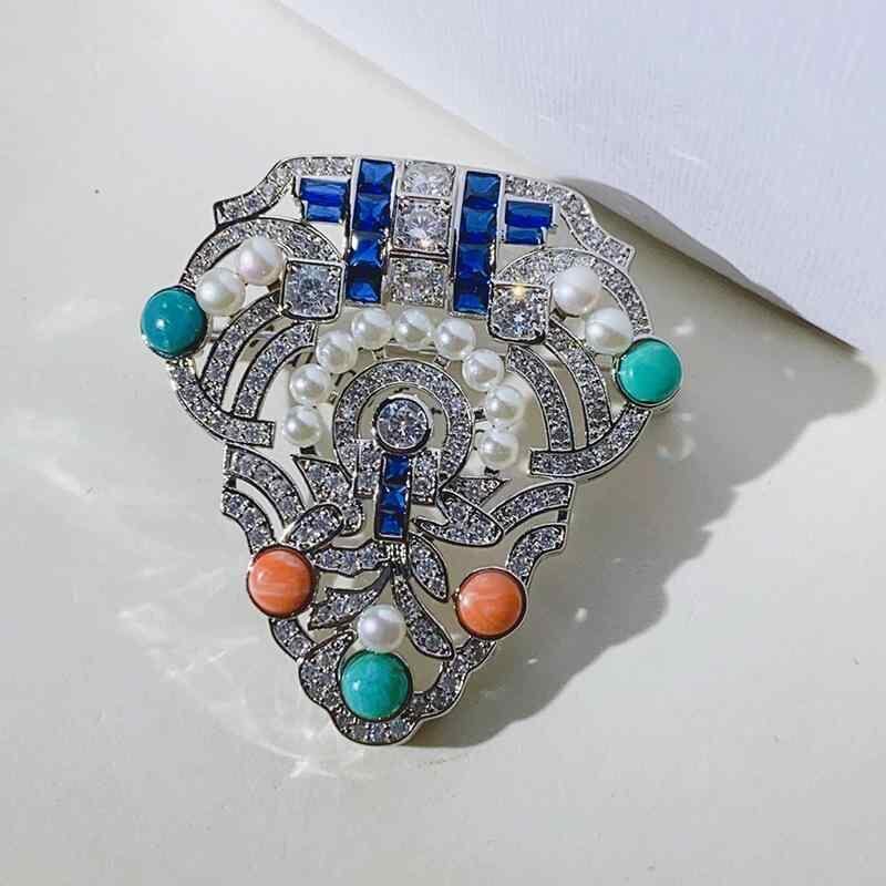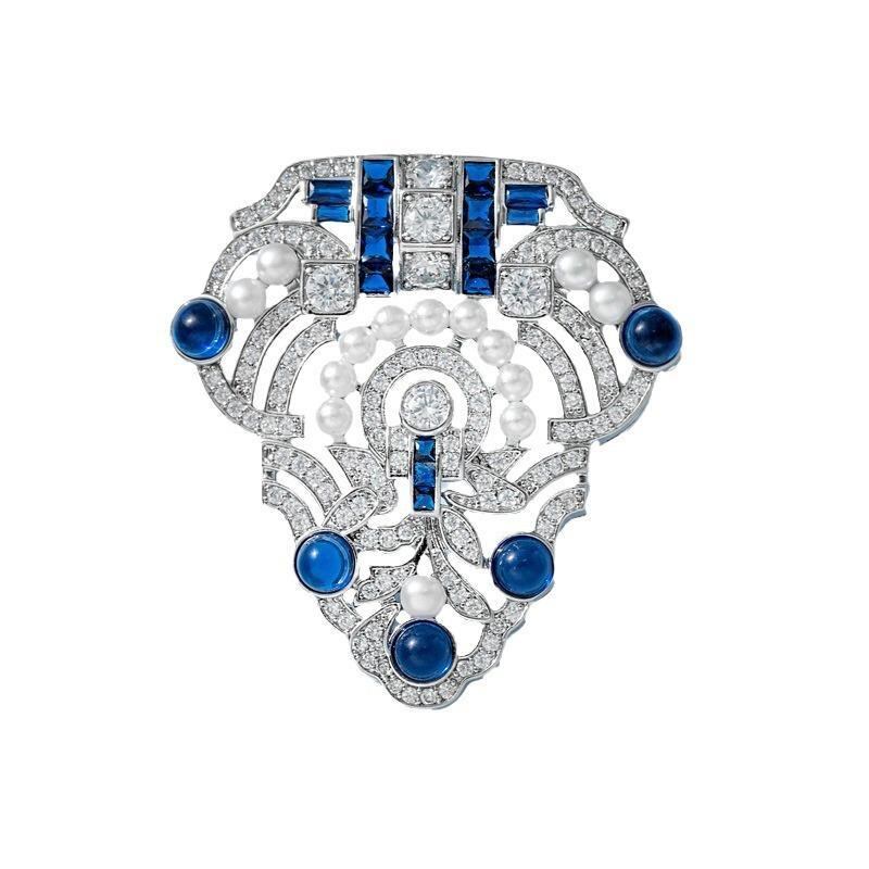 ブローチ 淡水パール レディース セレモニー フォーマル 入学式 おしゃれ 胸飾り 高級感 ロイヤル 半貴石 ブルー 青 シールド 盾 淡水パール ピン 記章 エンブレム