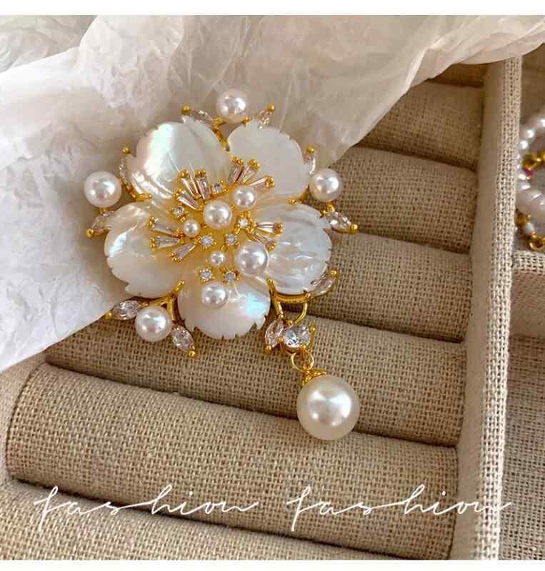 ブローチ パール レディース セレモニー コンサート 結婚式 贈り物 おしゃれ 胸飾り 高級感 日系 マザーオブ パール母貝 山茶花 カメリア 揺れる ドロップ 胸針 女性用 上品 軽やか ライトラグジュアリー 華やか アクセサリー
