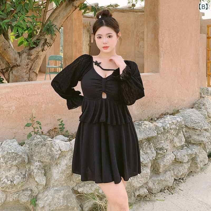 水着 レディース 女性用 大きいサイズ ビッグサイズ 長袖 ロングスリーブ ワンピース オールインワン 体型カバー 露出控えめ お腹カバー 細見え 着痩せ 高級感 無地 パッド付き ノンワイヤー 春夏 スイムウェア