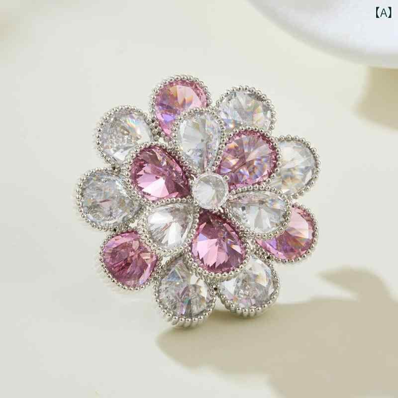 ブローチ レディース 女性用 ピンクホワイト グラデーション ジルコニア フラワー 花 立体 高級感 煌めく エレガント 銅製 電気メッキ加工 ファッション小物 フォーマル パーティー 結婚式 胸飾り ギフト プレゼント
