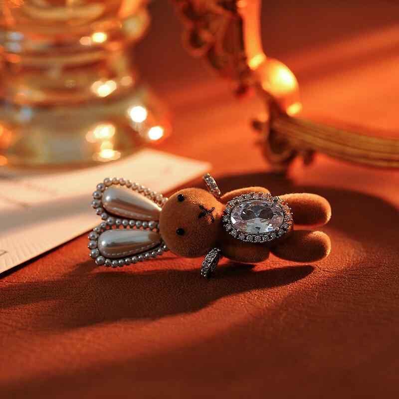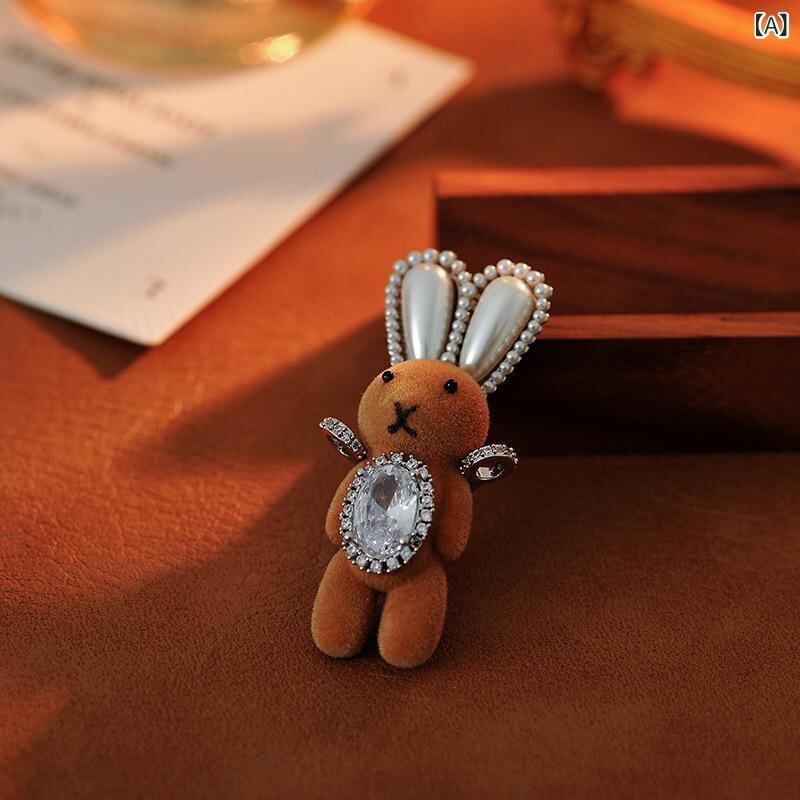 ブローチ レディース 女性用 高級感 個性的デザイン フロッキー ウサギ ライトラグジュアリー ユニーク 真鍮 電気メッキ加工 かわいい 動物モチーフ 普段使い パーティー