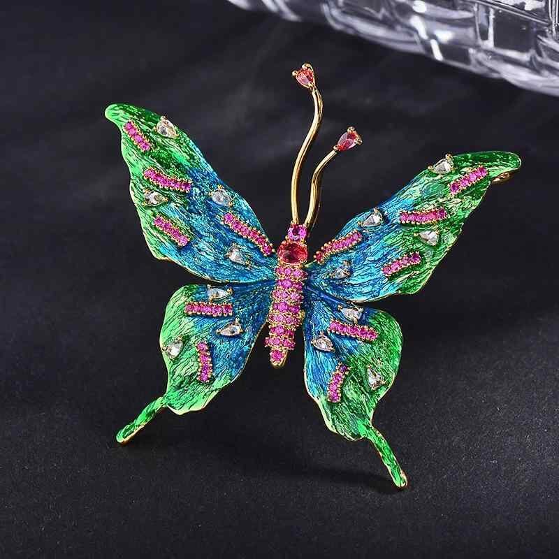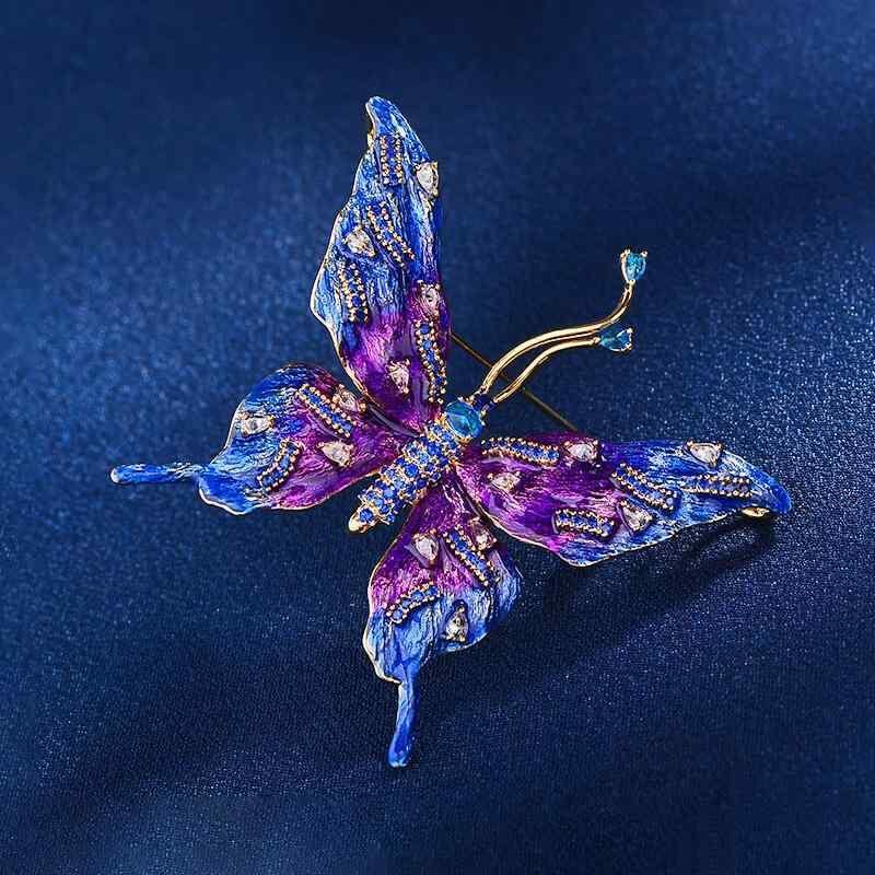 ブローチ レディース 個性的 繊細 七宝焼き 蝶 バタフライ ジルコニア 銅製 電気メッキ加工 高級感 エレガント ライトラグジュアリー おしゃれ ファッション 通勤 普段使い 春夏 ギフト アクセサリー