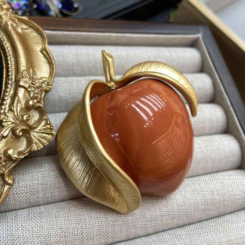 ブローチ レディース 柿モチーフ オレンジイエロー 金メッキ 銅製 ヴィンテージ風 高級感 オリジナルデザイン フルーツモチーフ 装飾品 コレクターアイテム 秋