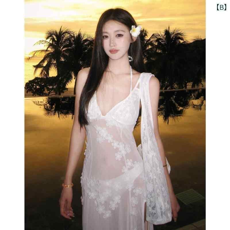 水着 レディース セパレート ビキニ 立体フラワー 高級感 ロングスカート ホワイト 夏 リゾート スタイルアップ 細見え 速乾性 伸縮性 カップ付き ノンワイヤー