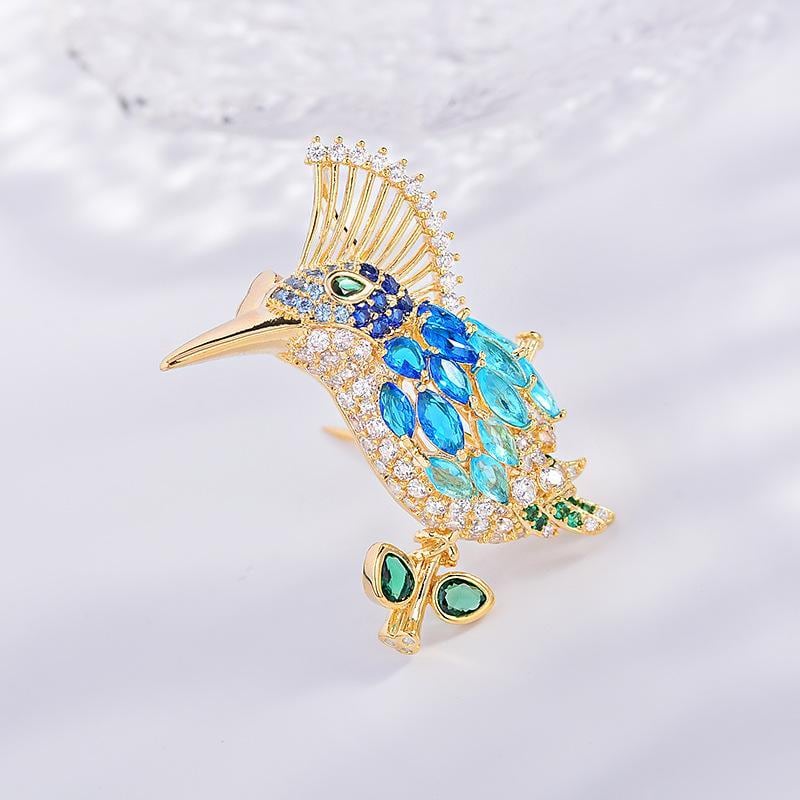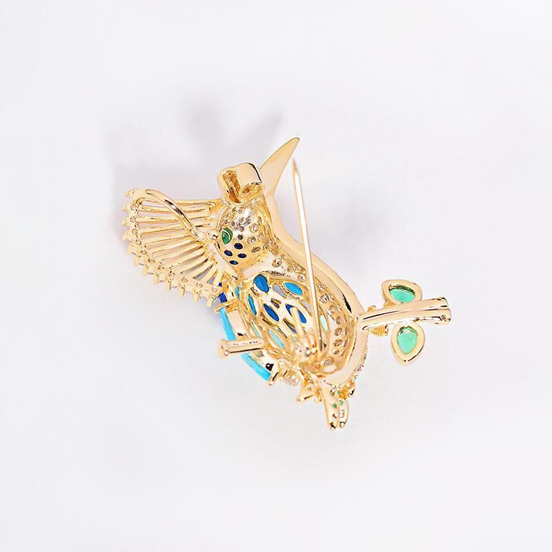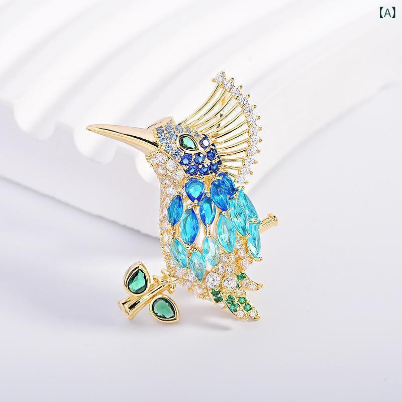 ・カテゴリ: ブローチ ・スタイル: エレガント、通勤ファッション ・素材: 銅、酸化ジルコニウム象嵌 ・デザイン: 鳥モチーフ ・カラー: ブルー ・対象: レディース ・加工: 電気メッキ ・用途: 装飾、多機能、贈答用、固定用