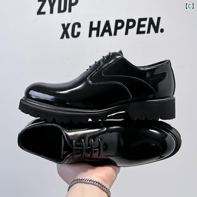 紳士靴 革靴 メンズ 英国風 シークレット インヒール ビジネス フォーマル カジュアル 通勤 結婚式 ウェディング 光沢 フェイクレザー 防滑 ラバーソール レースアップ ブラック ブラウン