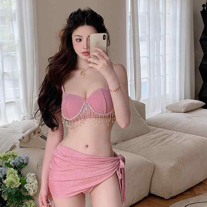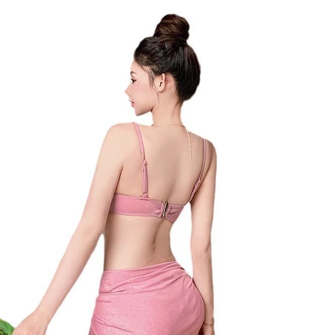 水着 レディース セパレート ビキニ 3点セット スカート付き ワイヤー入り パッド付き シンプル セクシー かわいい ナイロン ポリエステル スイムウェア ピンク ビーチ プール
