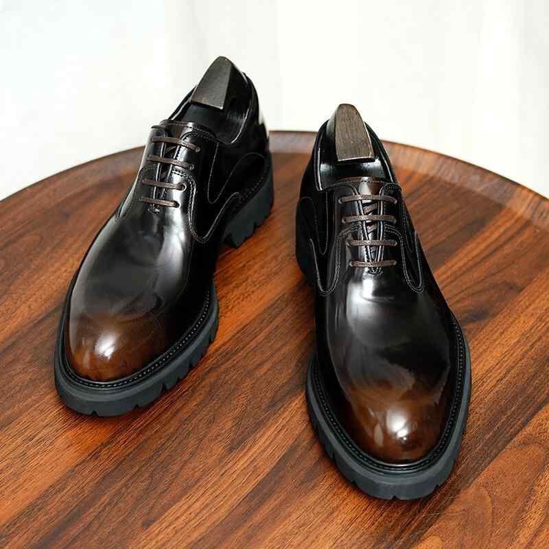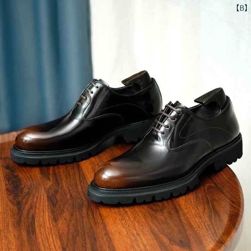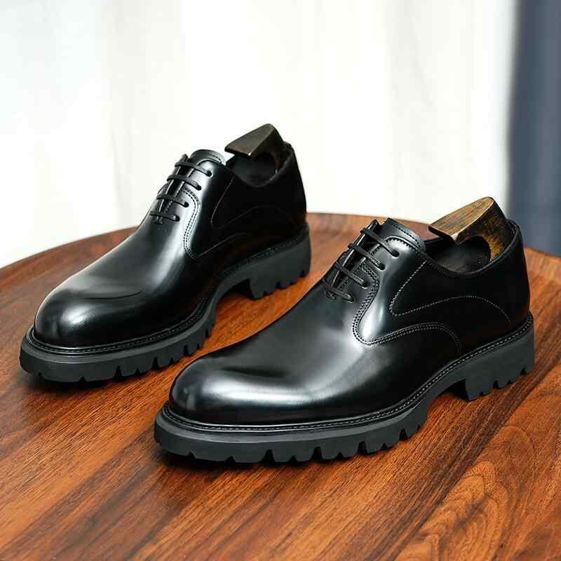 紳士靴 革靴 メンズ 厚底 ブリティッシュスタイル 本革 ビジネス カジュアル 光沢 モンクストラップ スリッポン ゴム底 羊革裏地 ミドルヒール 太ヒール プラットフォーム 通気性 防滑 衝撃吸収 ブラック ブラウン