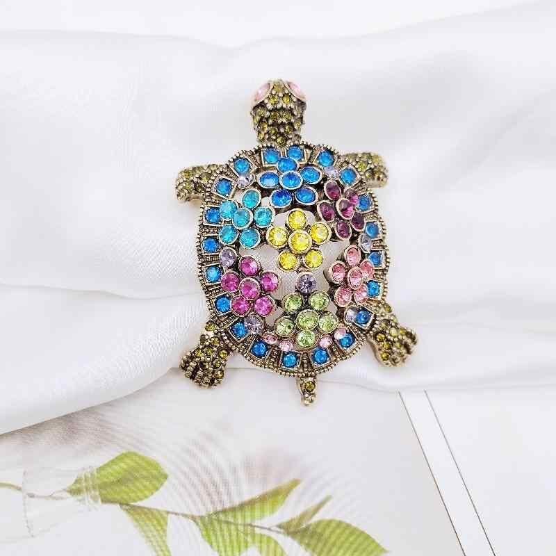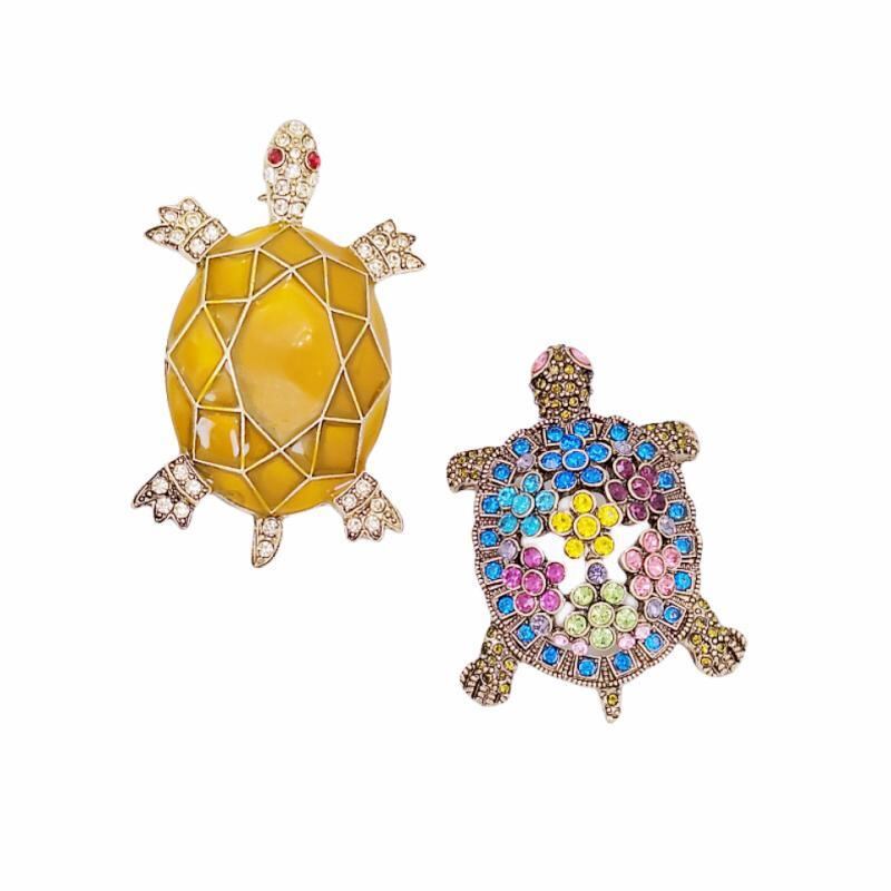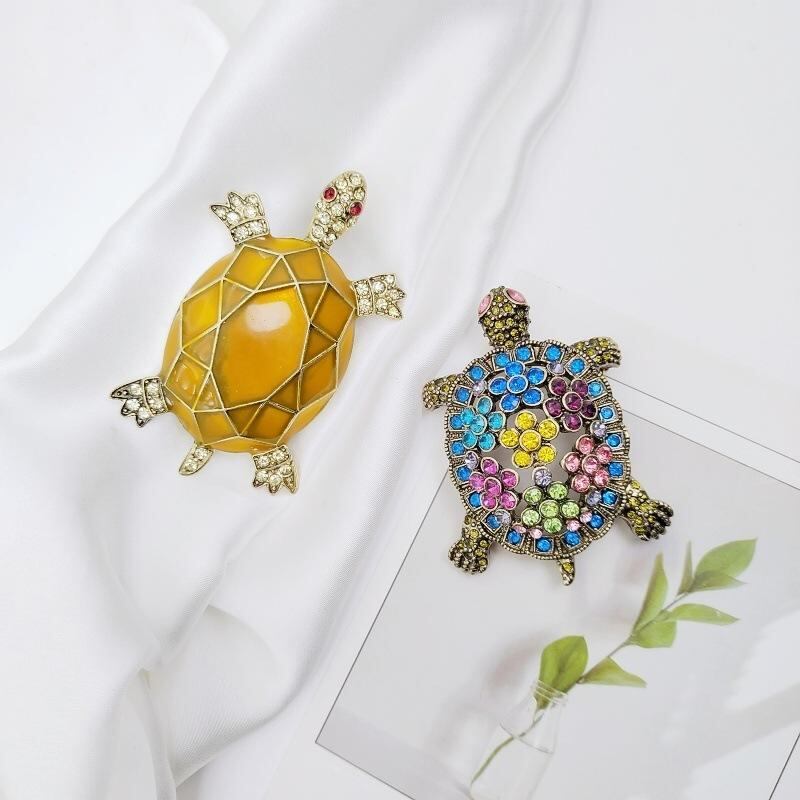 ブローチ 男女兼用 欧米風 レトロ ヴィンテージ ラインストーン装飾 立体 ウミガメ モチーフ 七宝焼き風 ドリップエナメル 個性的 おしゃれ 上品 カラフル 黄色