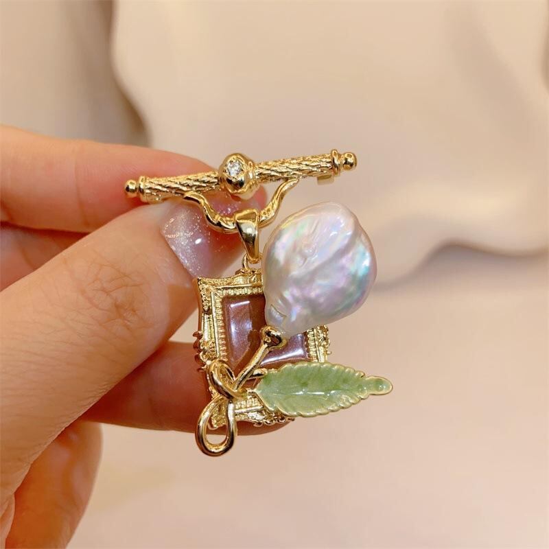ブローチ パール レディース セレモニー コンサート 結婚式 贈り物 おしゃれ 胸飾り 高級感 油絵風 バロック ローズ パール 文芸 胸花 セーター ペンダント 2way