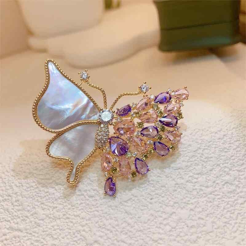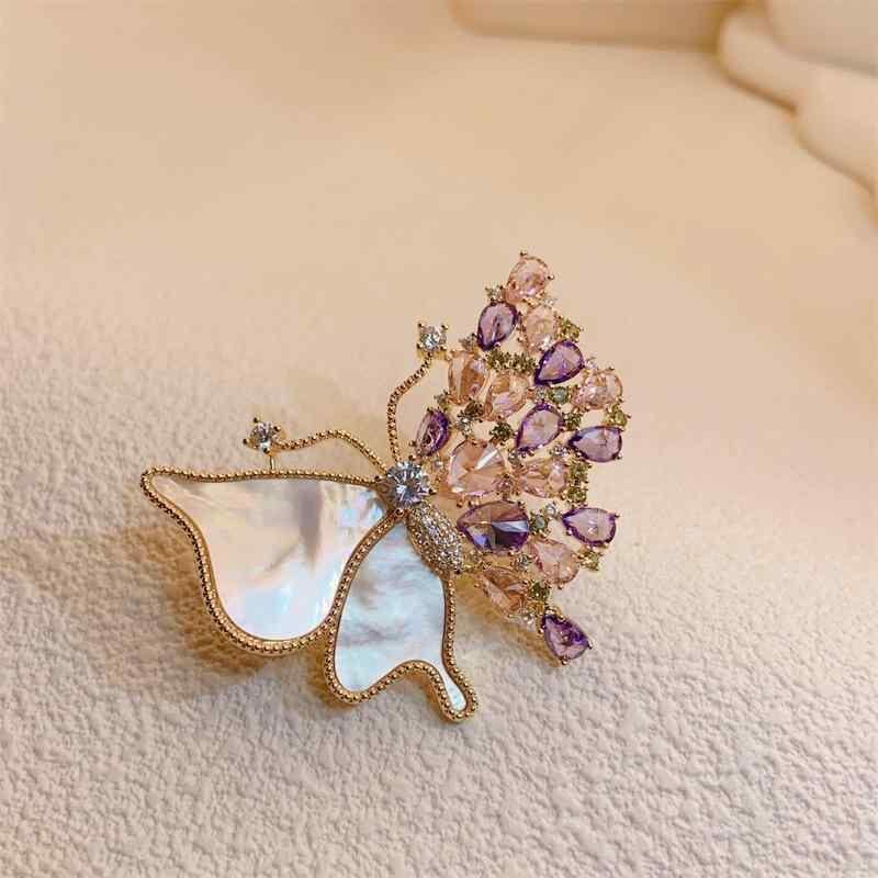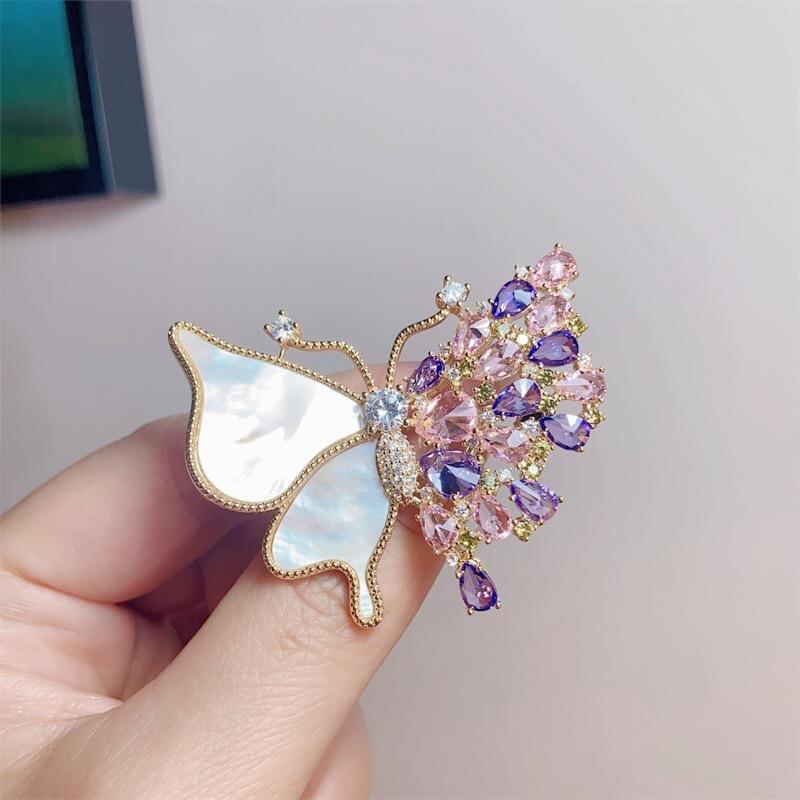 ブローチ レディース レトロ ヴィンテージ 高級感 淡水パール 銅製 マザーオブパール クリスタル 蝶 昆虫モチーフ ファッション アクセサリー ギフト