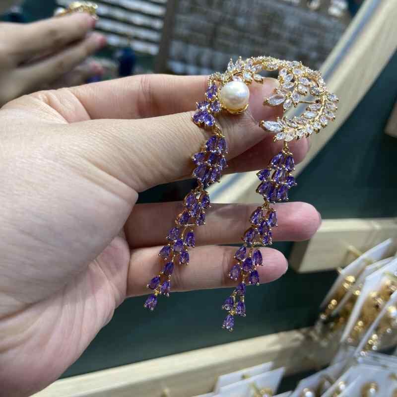 ブローチ レディース パープル 柳の葉 タッセル フレンチ レトロ 豪華 上品 デザイン性 存在感 繊細 多機能 銅製 電気メッキ加工 胸元隠し 胸元固定 秋冬 アクセサリー