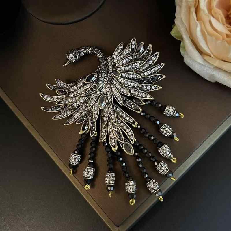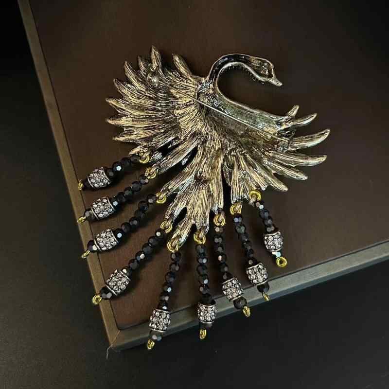 ブローチ レディース レトロ ビンテージ 欧米風 アンティーク調 高級感 存在感 ブラックスワン ラインストーン ジルコニア 合金製 電気メッキ加工 動物モチーフ フォーマル アクセサリー