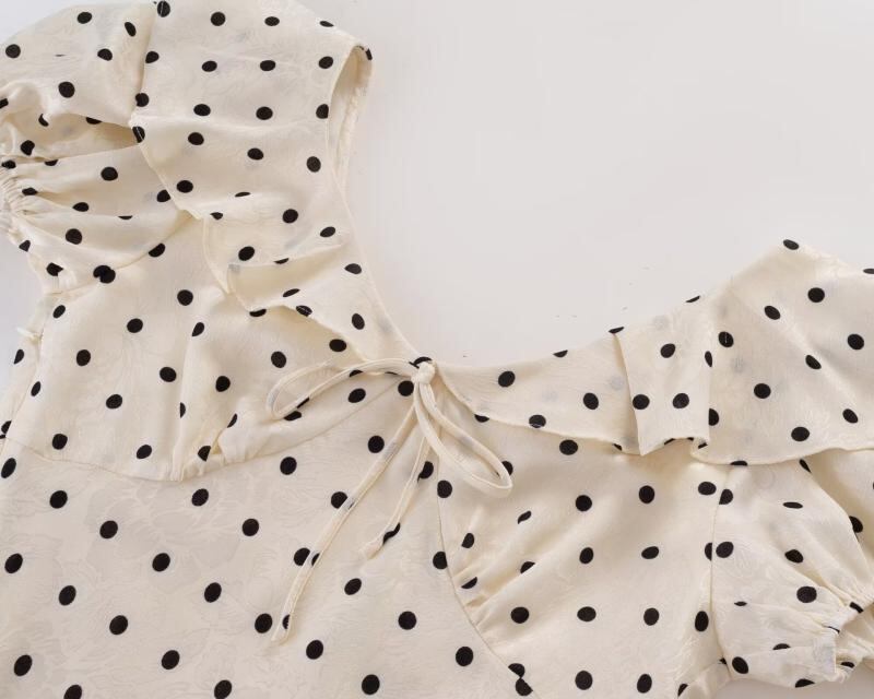 ワンピース レディース フレンチ Vネック レトロ 裾フリル 膝下丈 ポリエステル 高見え きれいめ 大人かわいい フェミニン 旅行 お洒落着