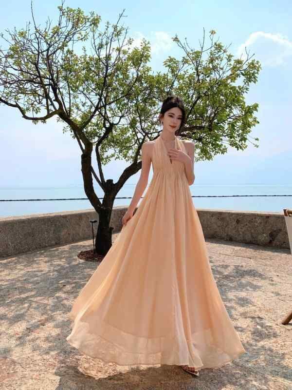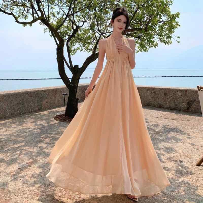 商品仕様: ・素材: ポリエステル ・柄: その他 ・スタイル: その他 ・スカート丈: ロング ・ネックライン: Vネック ・袖丈: ノースリーブ ・ウエスト: ハイウエスト ・カラー: 裸ピンク、ワインレッド ・サイズ: S、M、L、XL ・スタイル: リゾート ・スカートの種類: ワンピース