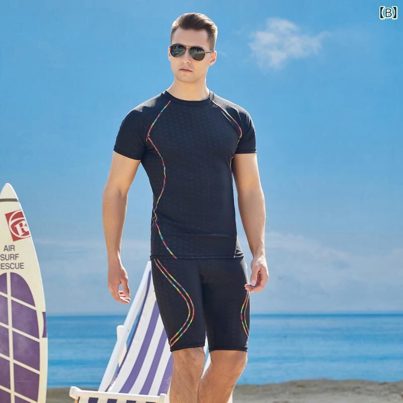 水着 スイムウェア メンズ ラッシュガード サメ肌加工 速乾 通気性 半袖 五分丈パンツ 上下セット タイトフィット 大きいサイズ 競泳 サーフィン ダイビング マリンスポーツ