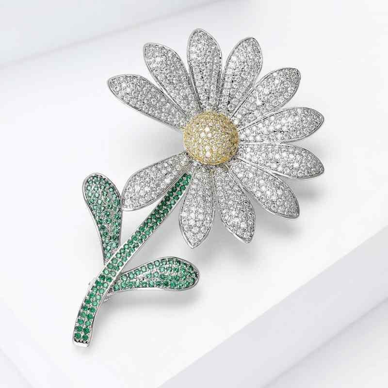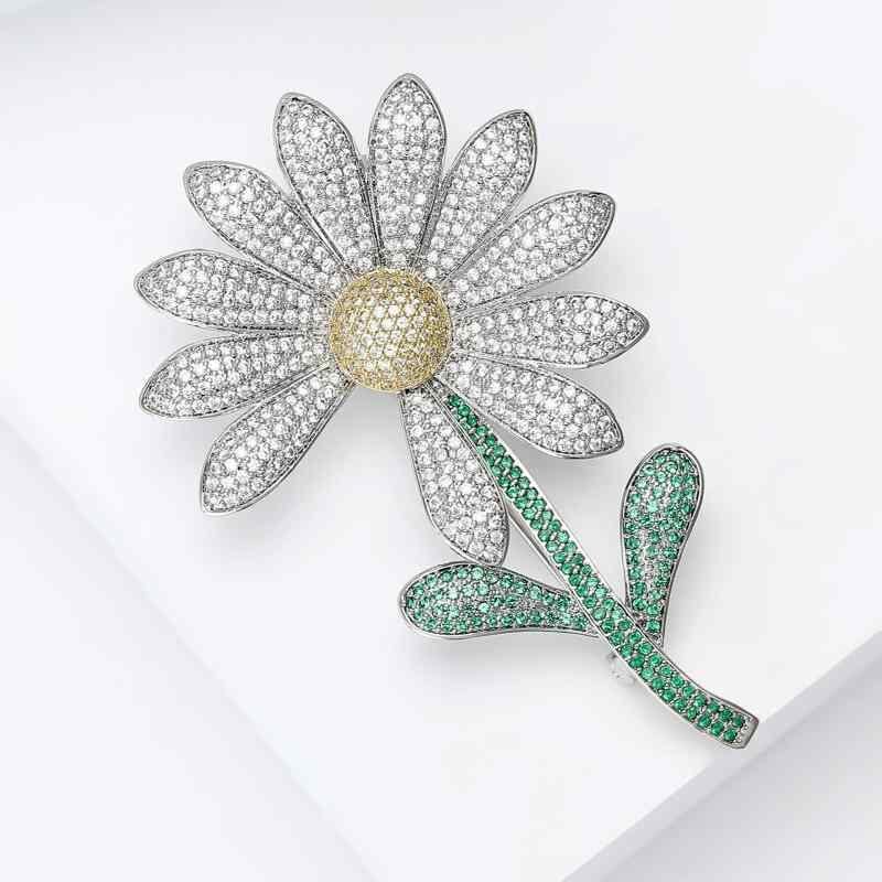 ブローチ レディース デイジー 花束 フラワーモチーフ 個性的 万能 ピン バッジ エレガント 上品 高級感 ジルコニア装飾 春夏 ファッション アクセサリー 普段使い フォーマル対応